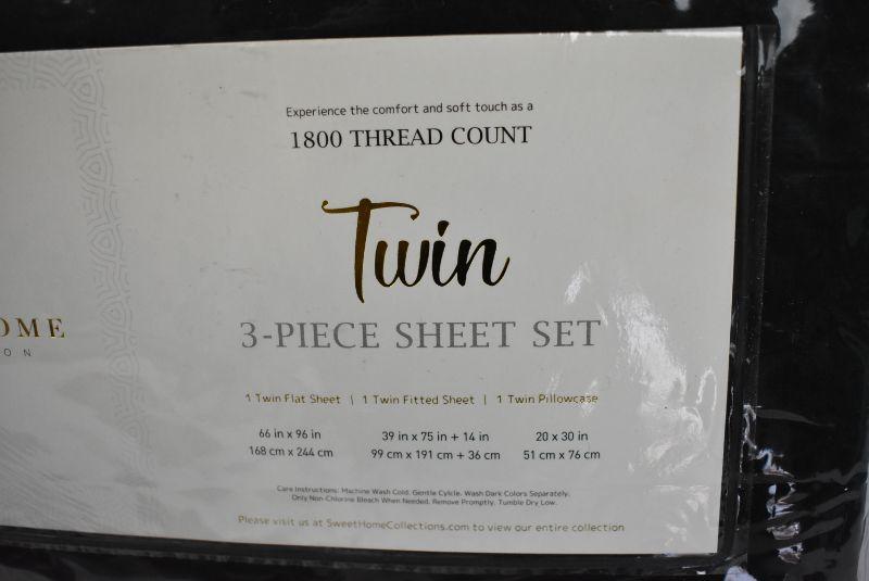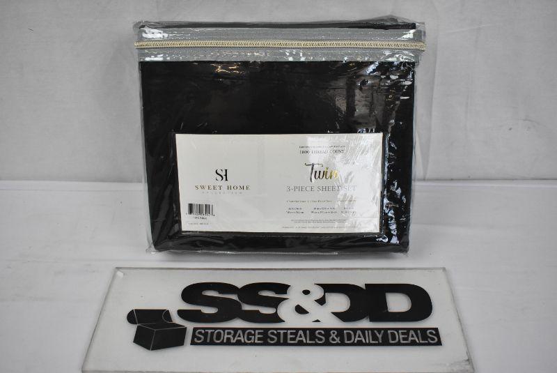 Twin Sheet Set by Sweet Home, Black, 1800 Thread Count - New