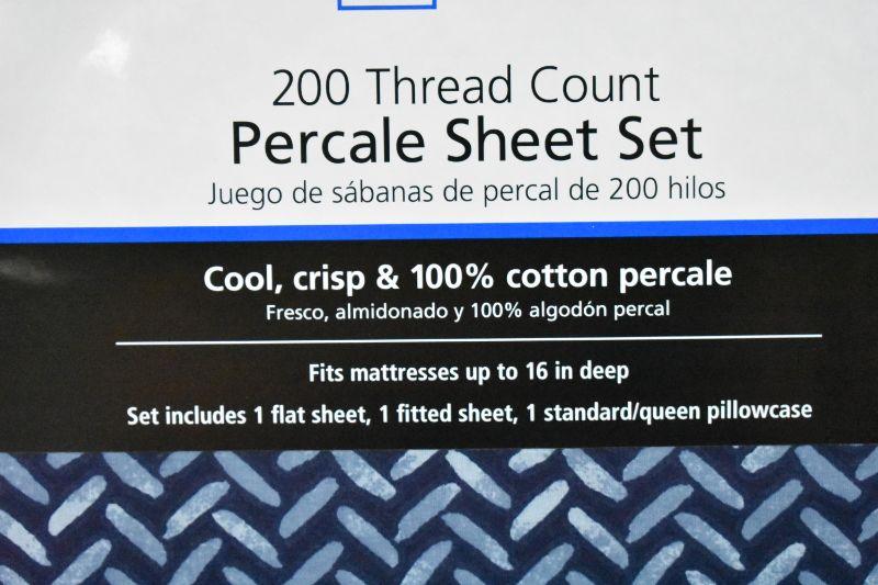 Twin Sheet Set, Mainstays 200 Thread Count Blue Herringbone - New