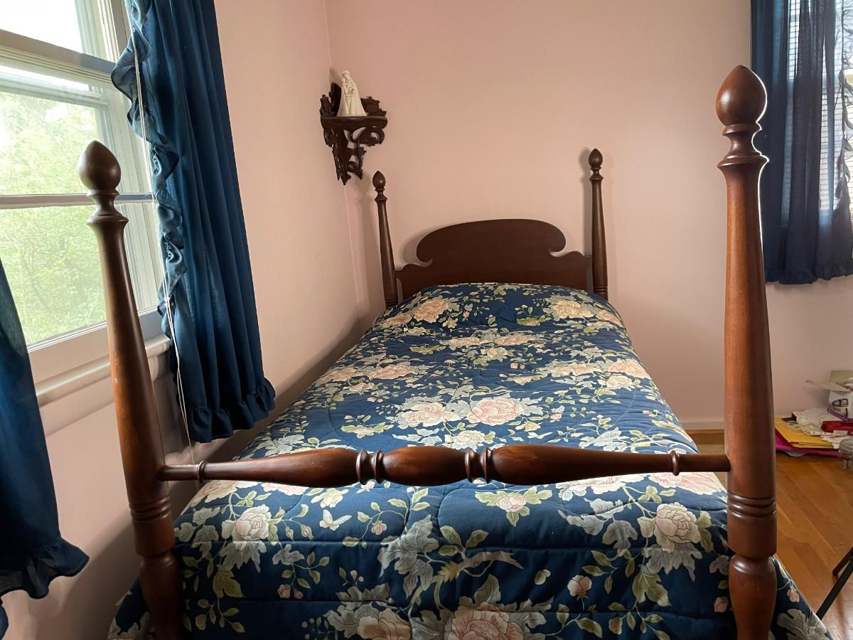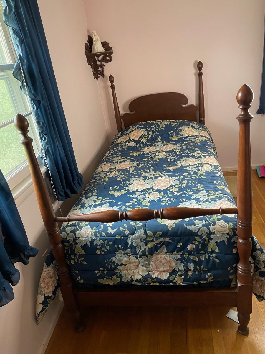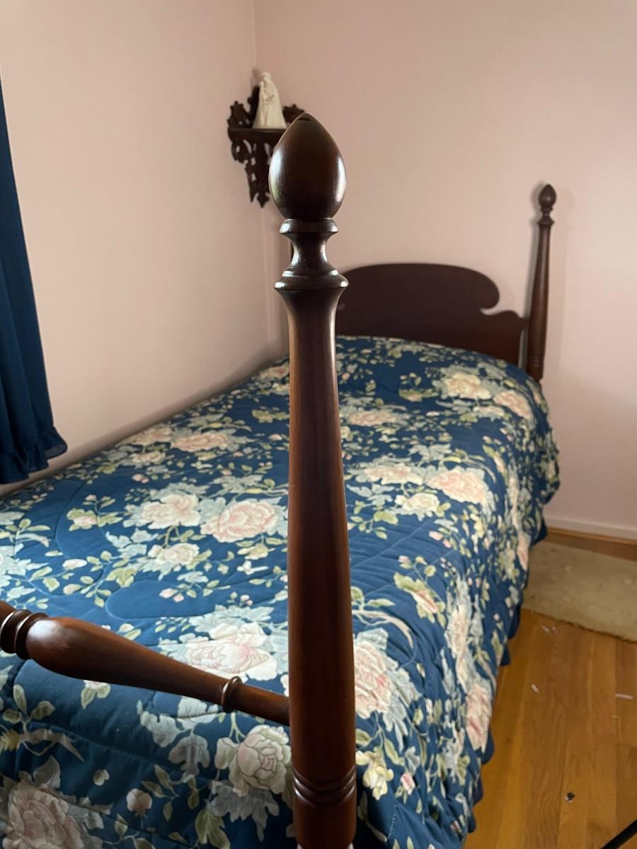 Solid wood. 38(W) x 79(L). Headboard, footboard, frame included.