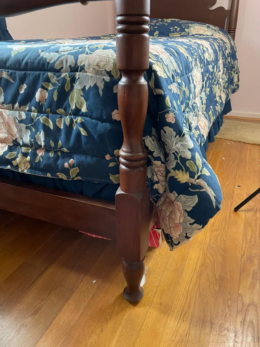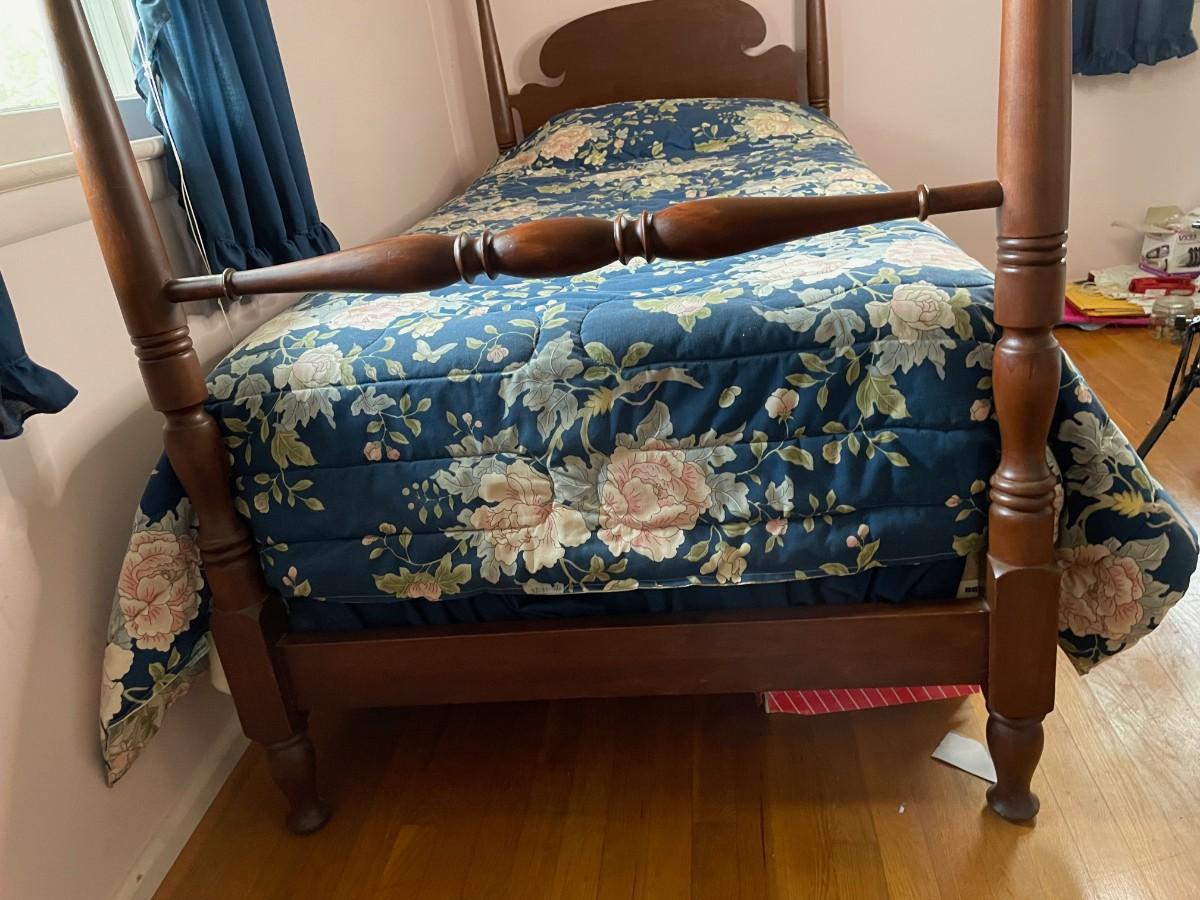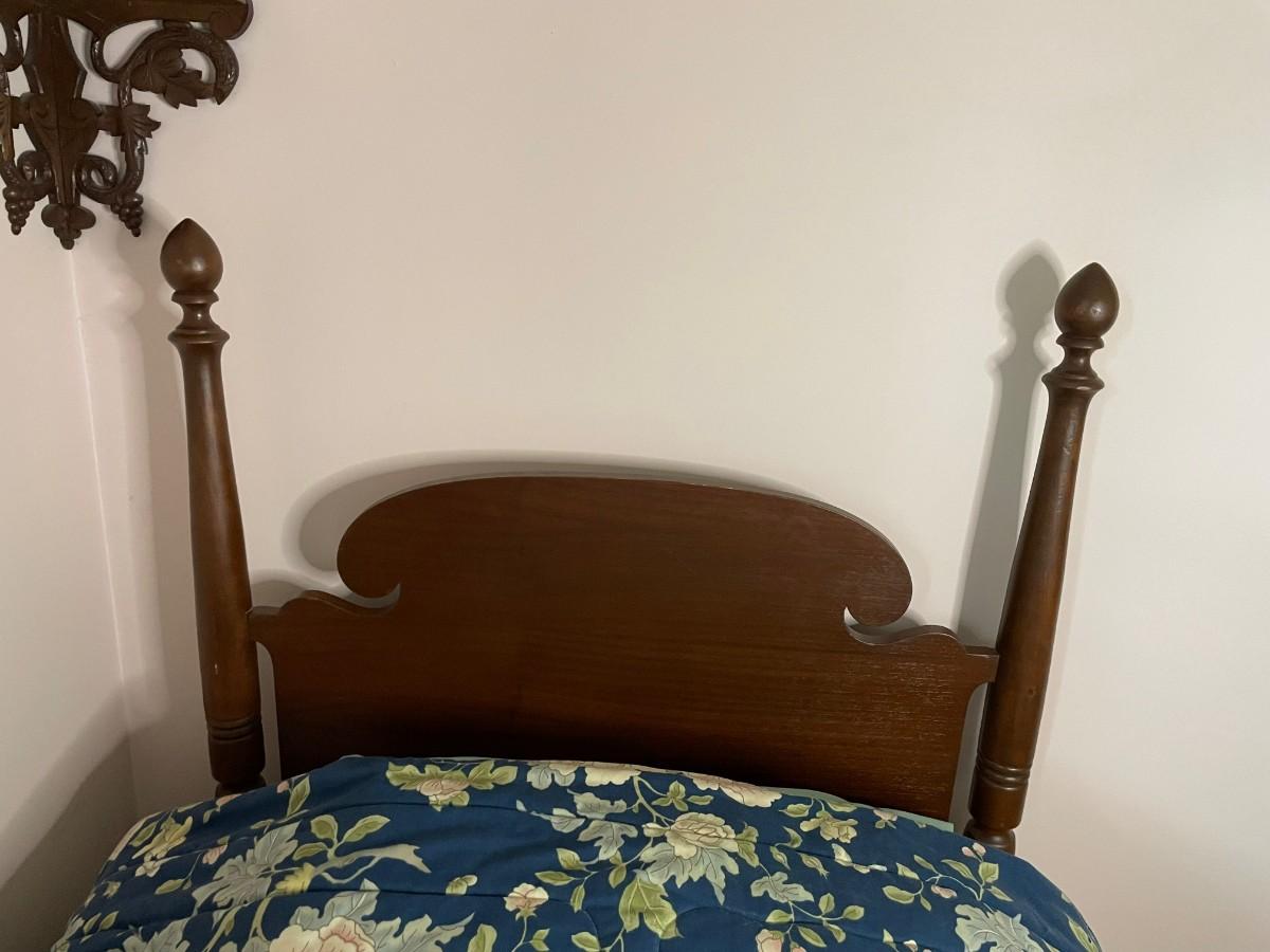 Solid wood. 38(W) x 79(L). Headboard, footboard, frame included.