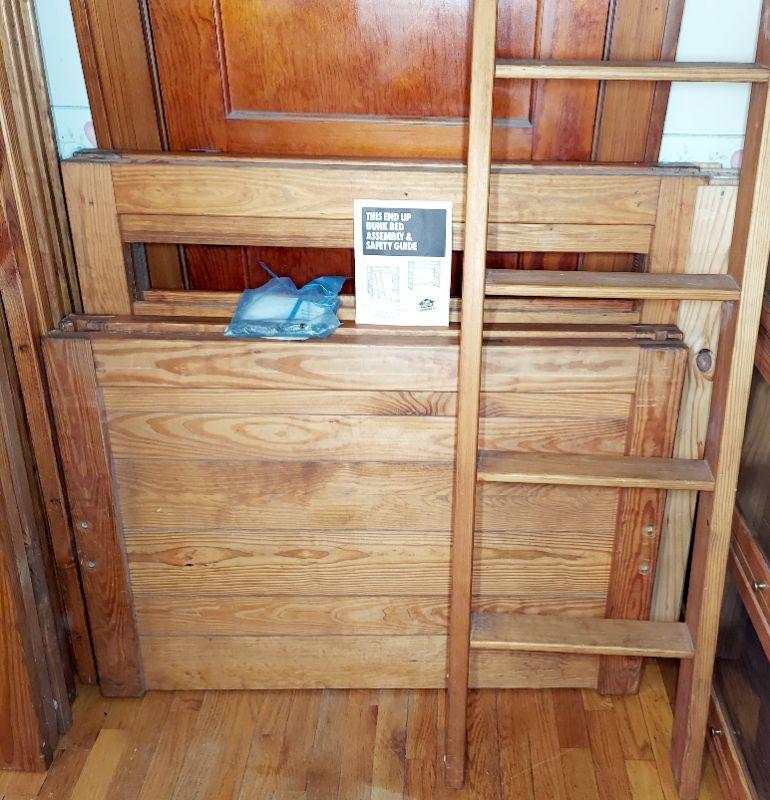Bed is in good condition, some of the hardware is missing but does come with 4 large screws. Otherwise it's ready to go. Comes with instructions on how to put it together and what you need to do so.