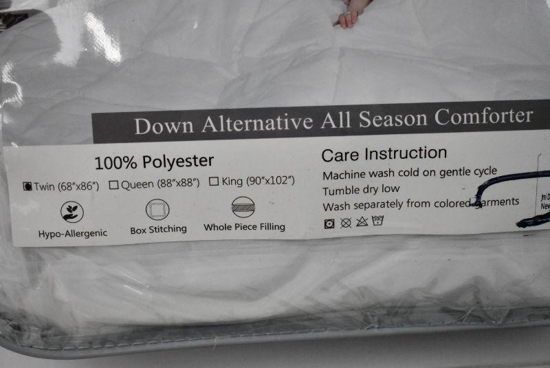 Twin Size Down Alternative All Season Comforter, White 68" x 86" - New