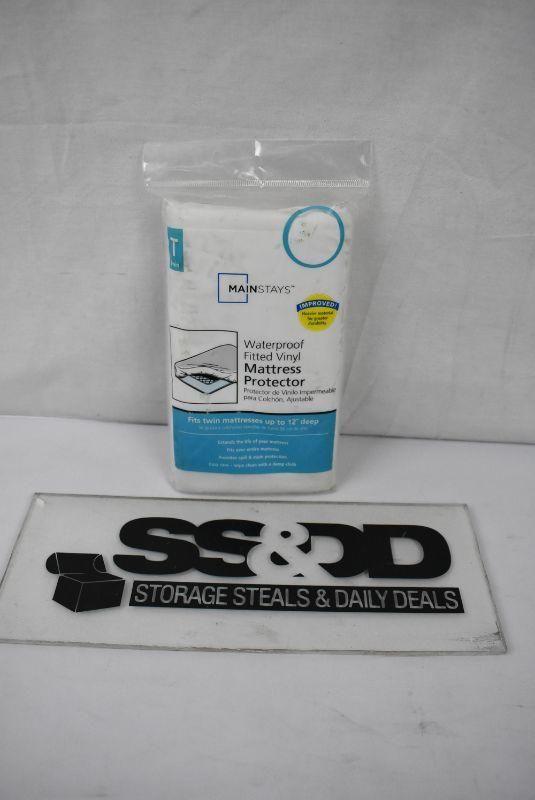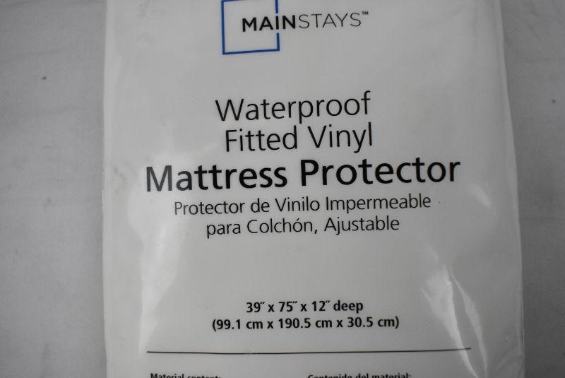 Twin Size Mainstays Fitted Vinyl Waterproof Mattress Protector. Warehouse Dirt as Shown