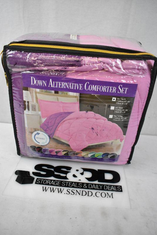 Twin Size Pink/Purple Down Alternative Reversible 2pc Comforter Set - New