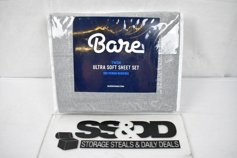 Twin Size Ultra Soft Sheet Set by Bare Home. 1800 Premium Microfiber, "Heathered Black" Gray - New