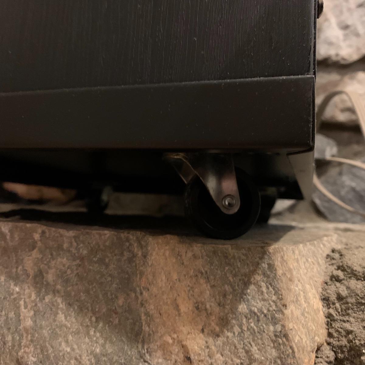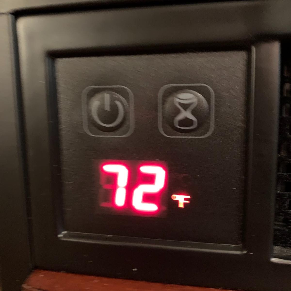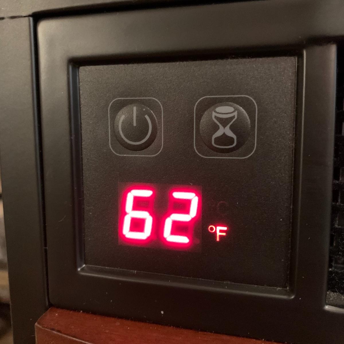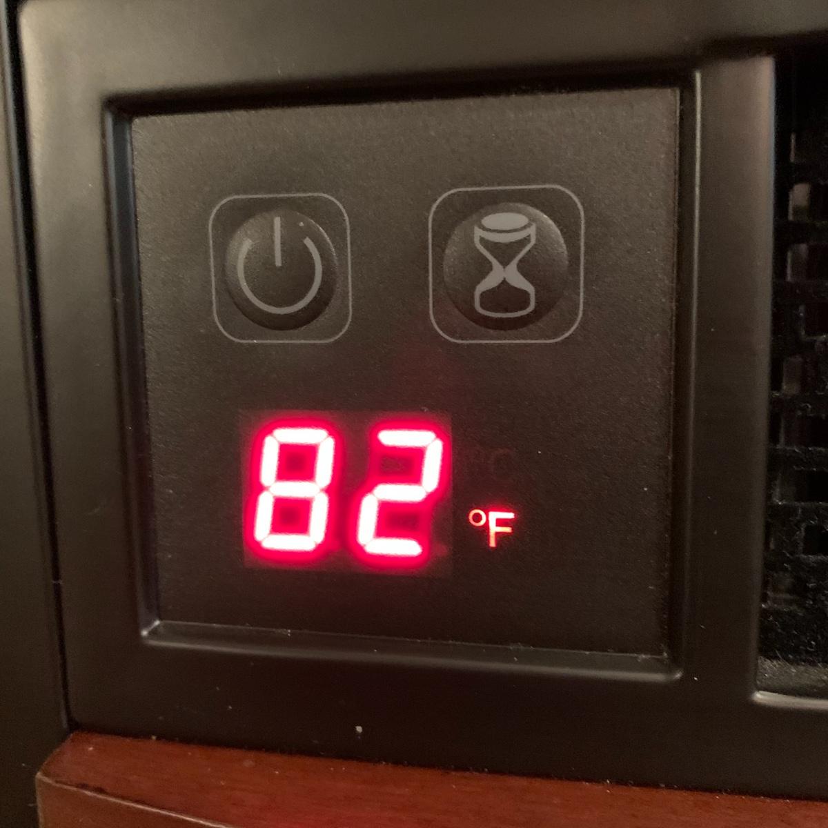 Infrared heater and electric fireplace made by Twin Star International, Model 20IF100GRA-C202. Has various settings, including a timer, a temperature setting, and a button to turn the flame on and off. Heat can come out of the top vent with or without the flame turned on. The unit is on four wheels and has a three-pronged electric plug. It measures 20” x 15” x 22”. Local Pickup Only
