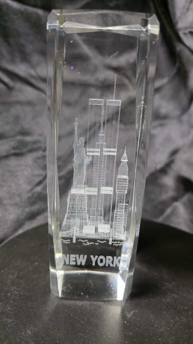 Twin Towers New York 3D Laser-Etched Crystal Skyline Paperweight