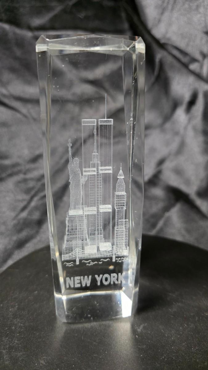 Twin Towers New York 3D Laser-Etched Crystal Skyline Paperweight