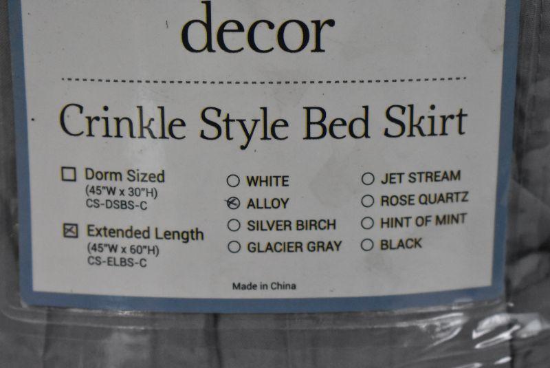 Twin XL Bed Skirt Crinkle Extended Bed Skirt Twin XL - Alloy Gray (For Raised or Lofted Beds) - New, $27 Retail