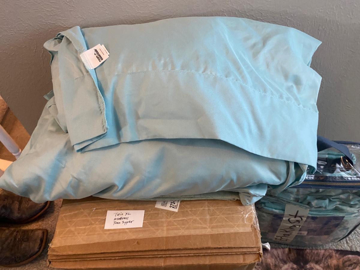 TWIN XL MATTRESS TOPPER AND 2 SETS OF TWIN XL SHEETS AND 1 SET OF KING SIZE SHEETS