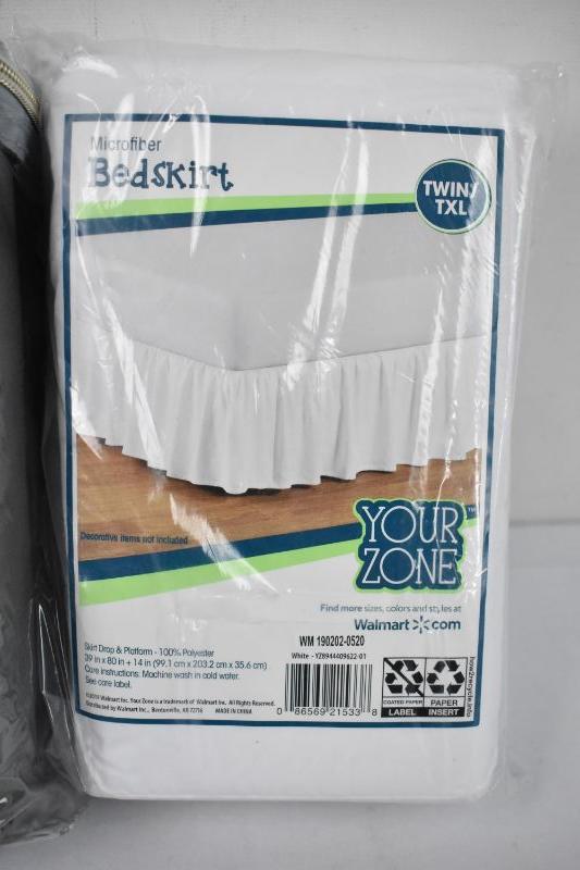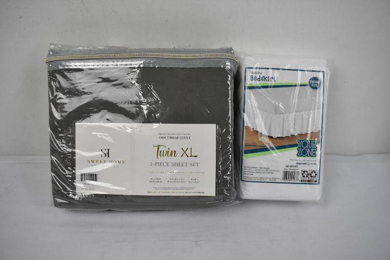 Twin XL Sheet Set 1800 TC Gray & Twin XL Bed Skirt White - New