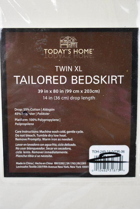 Twin XL Tailored Bed Skirt in Ivory, Today's Home Basic Cotton Rich Bedding Collection, $19 Retail - New
