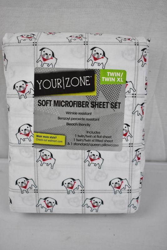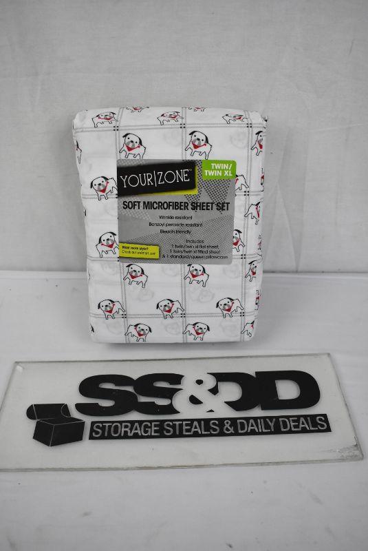 Twin/Twin XL Microfiber Sheet Set, White with Dogs - New