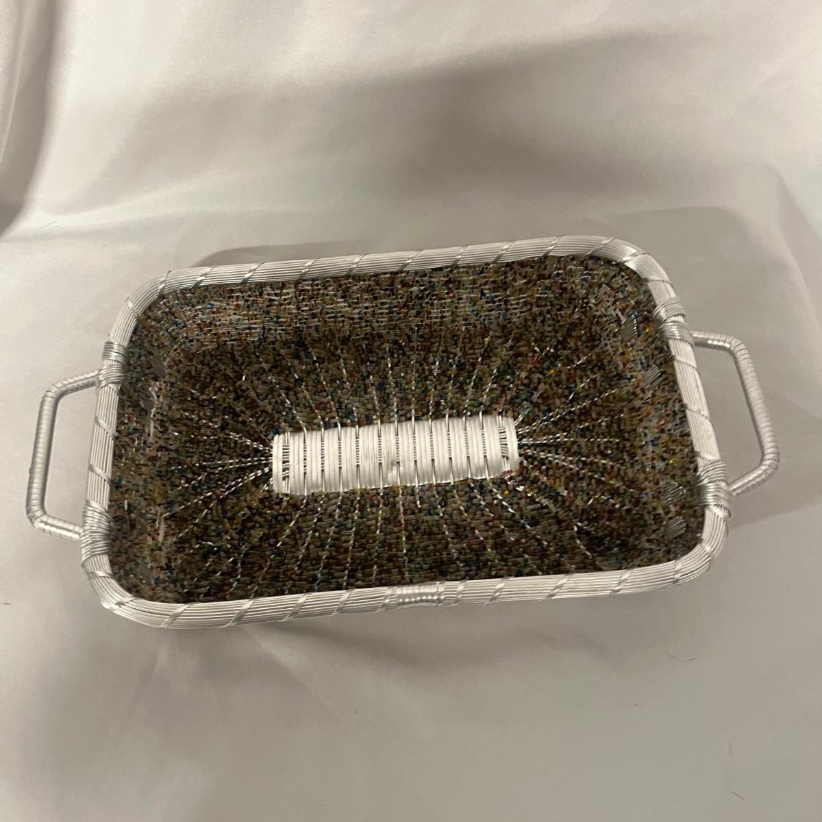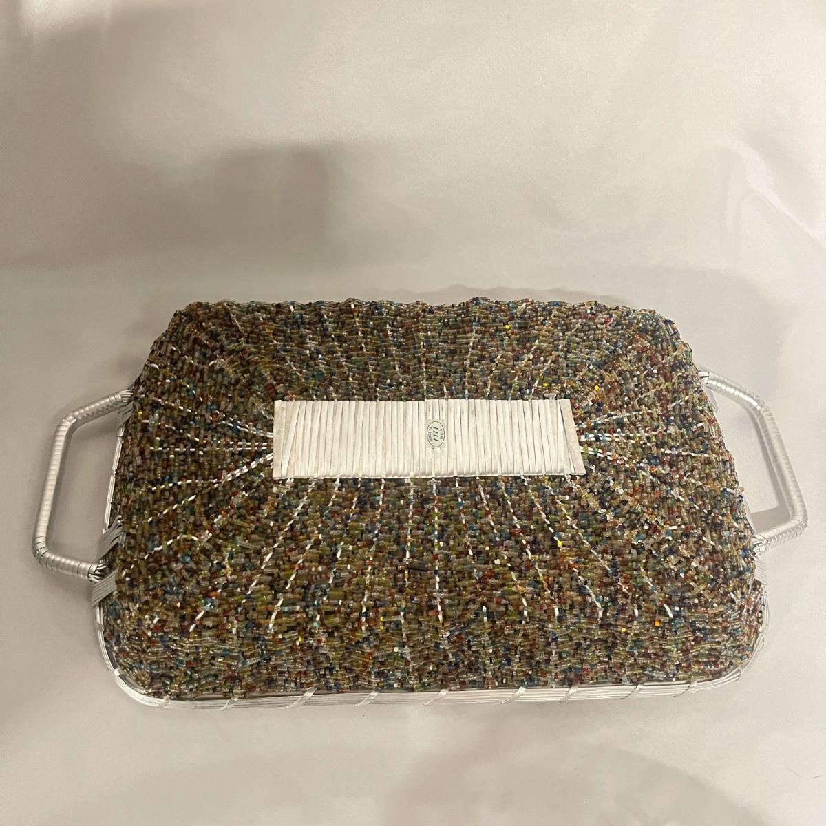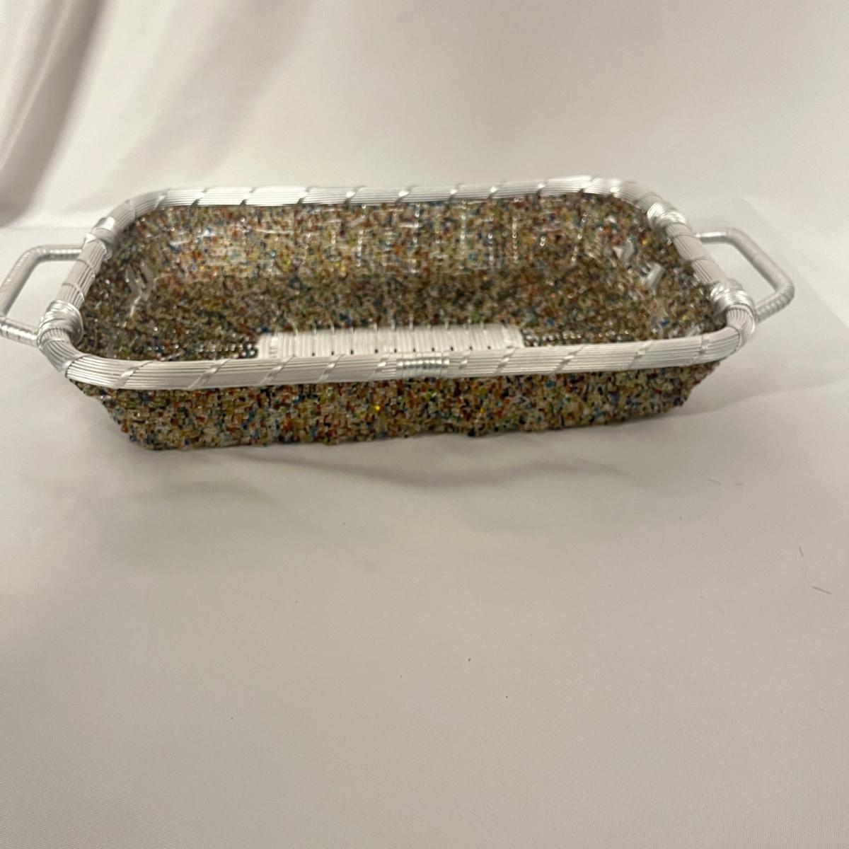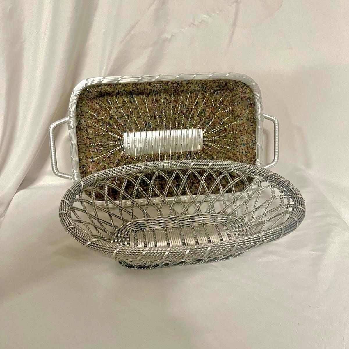 Twisted Metal Bread Basket & Beaded Multi Colored Decorative Basket (B2-MG)