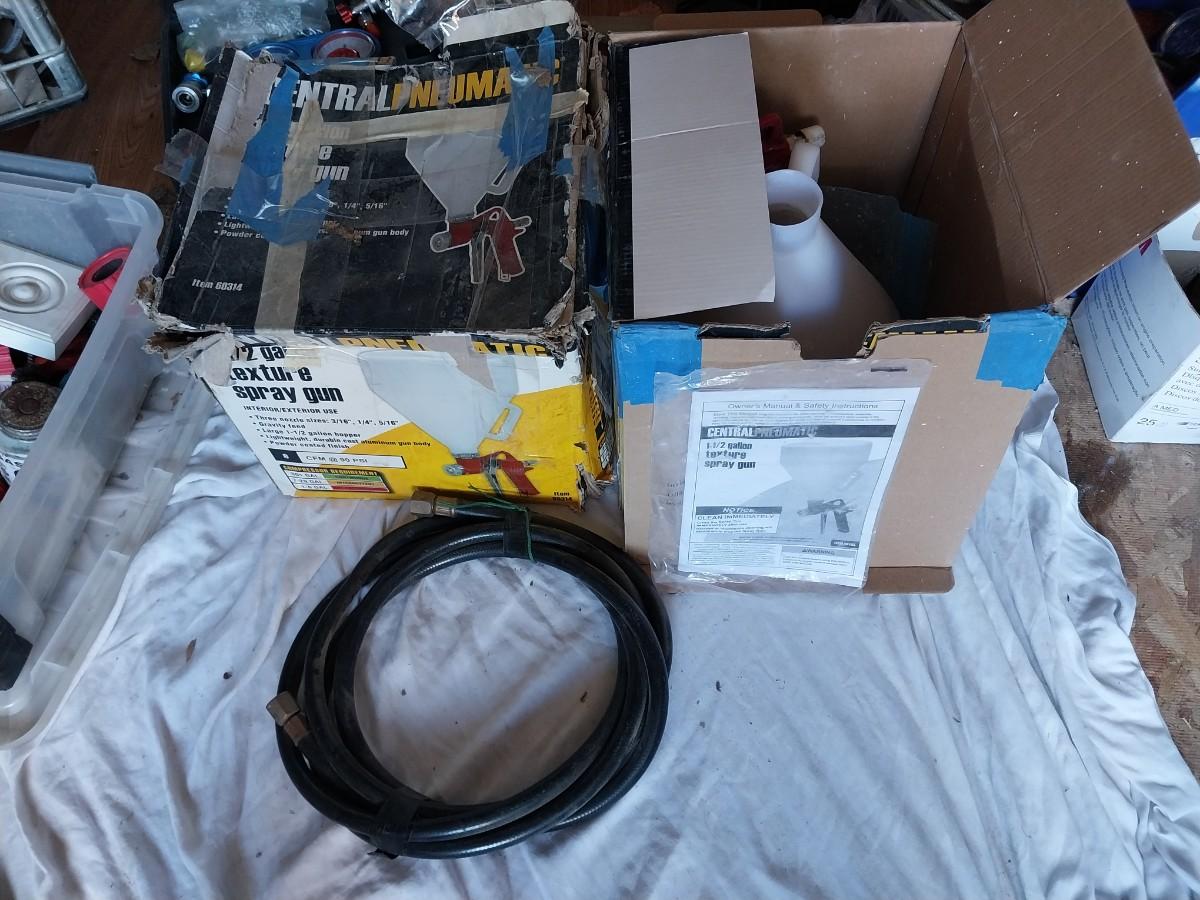 TWO 1 1/2 GALLON TEXTURE SPRAY GUNS AND AIR HOSE