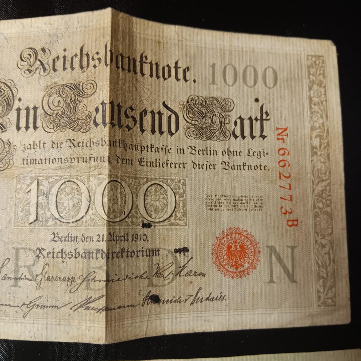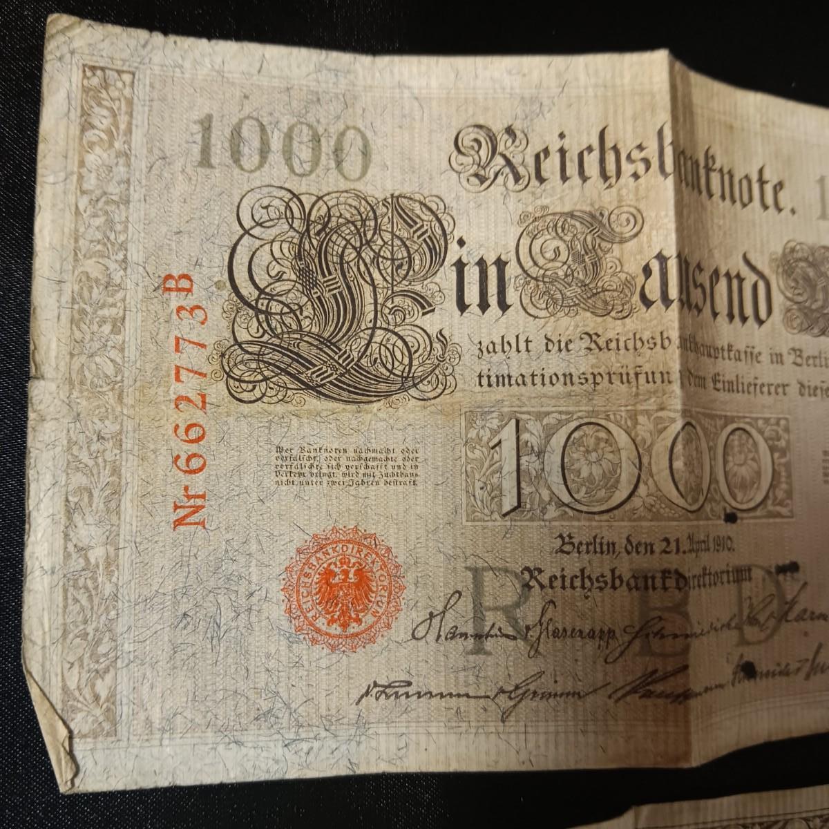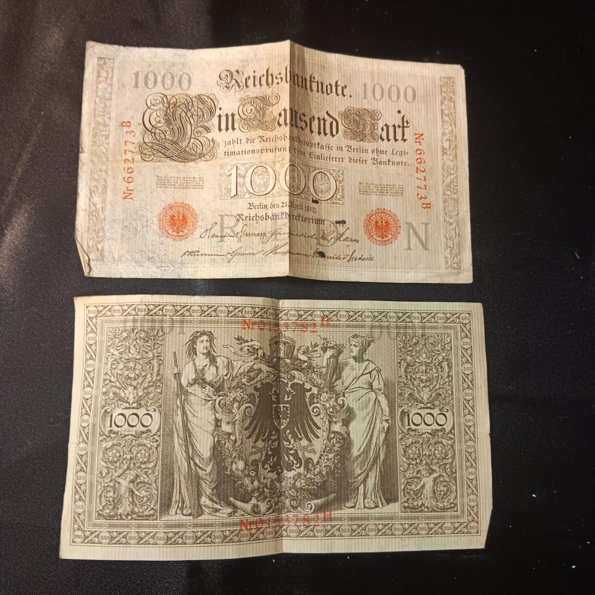 TWO 1,000 MARK REICHSBANKNOTE FROM IMPERIAL GERMANY, ISSUED IN 1910