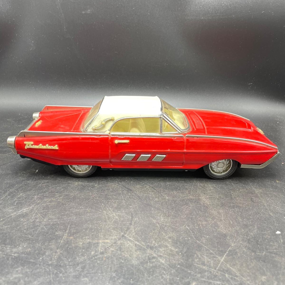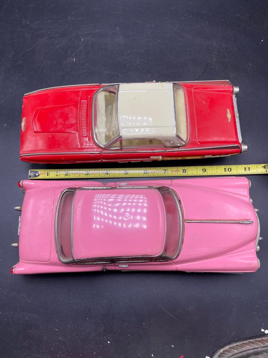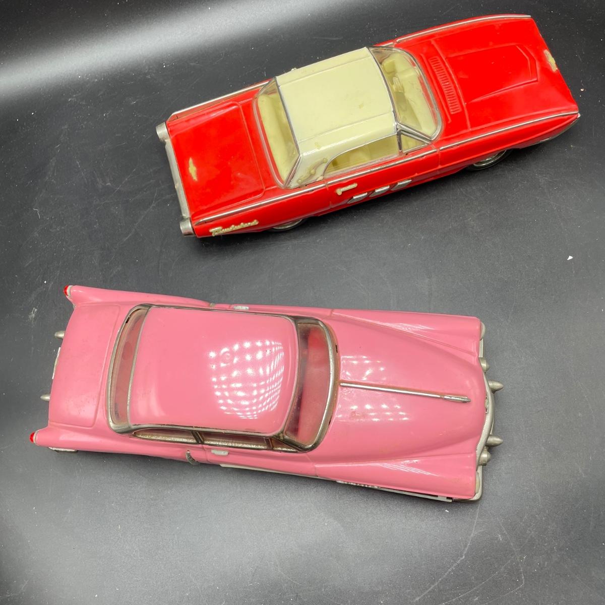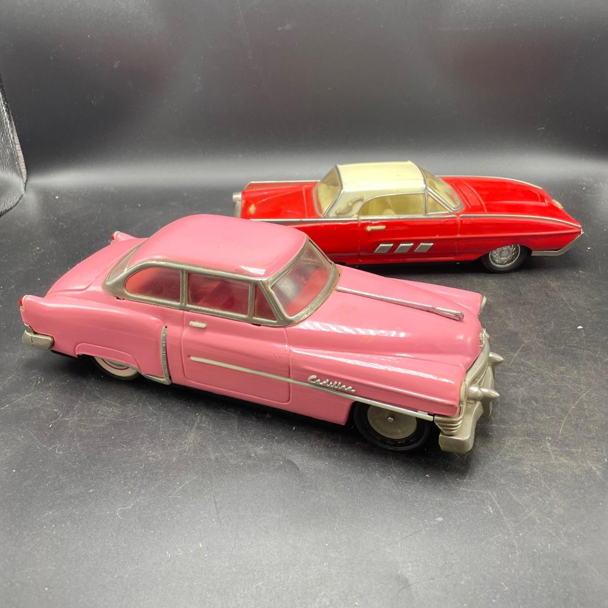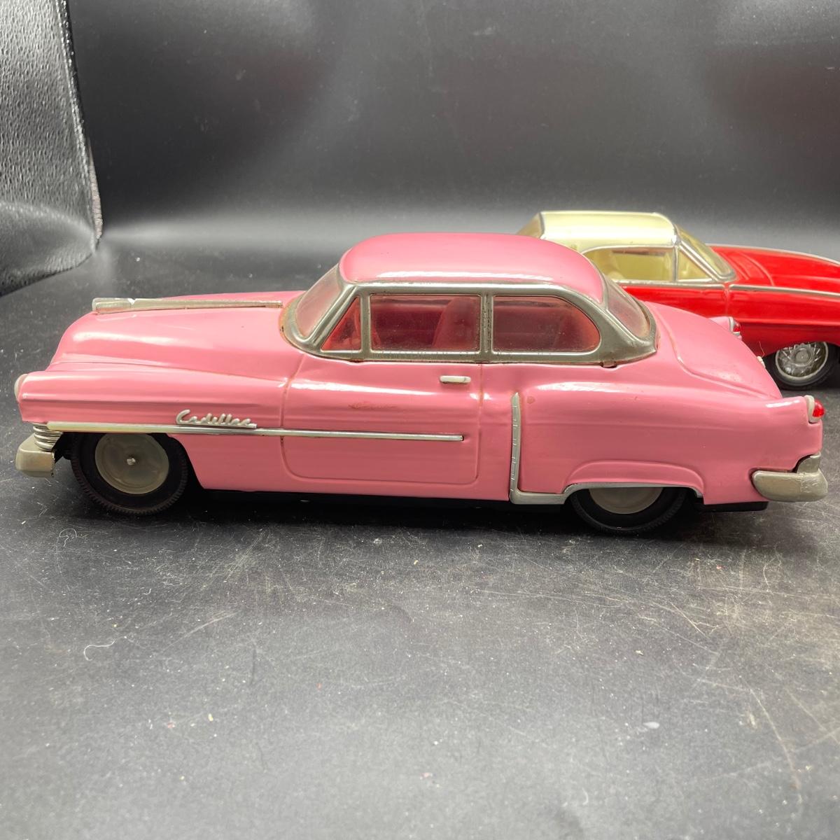 Two die cast cars sized 1:18. A pink 1950 Cadillac and a red and white Thunderbird. Both are in fine condition. See images. Shipping available.