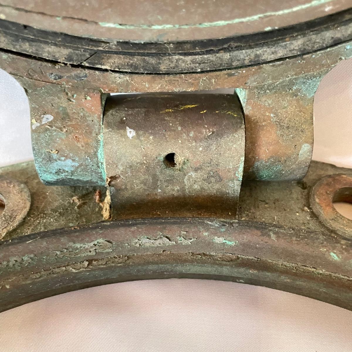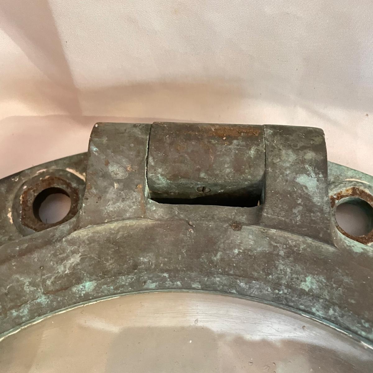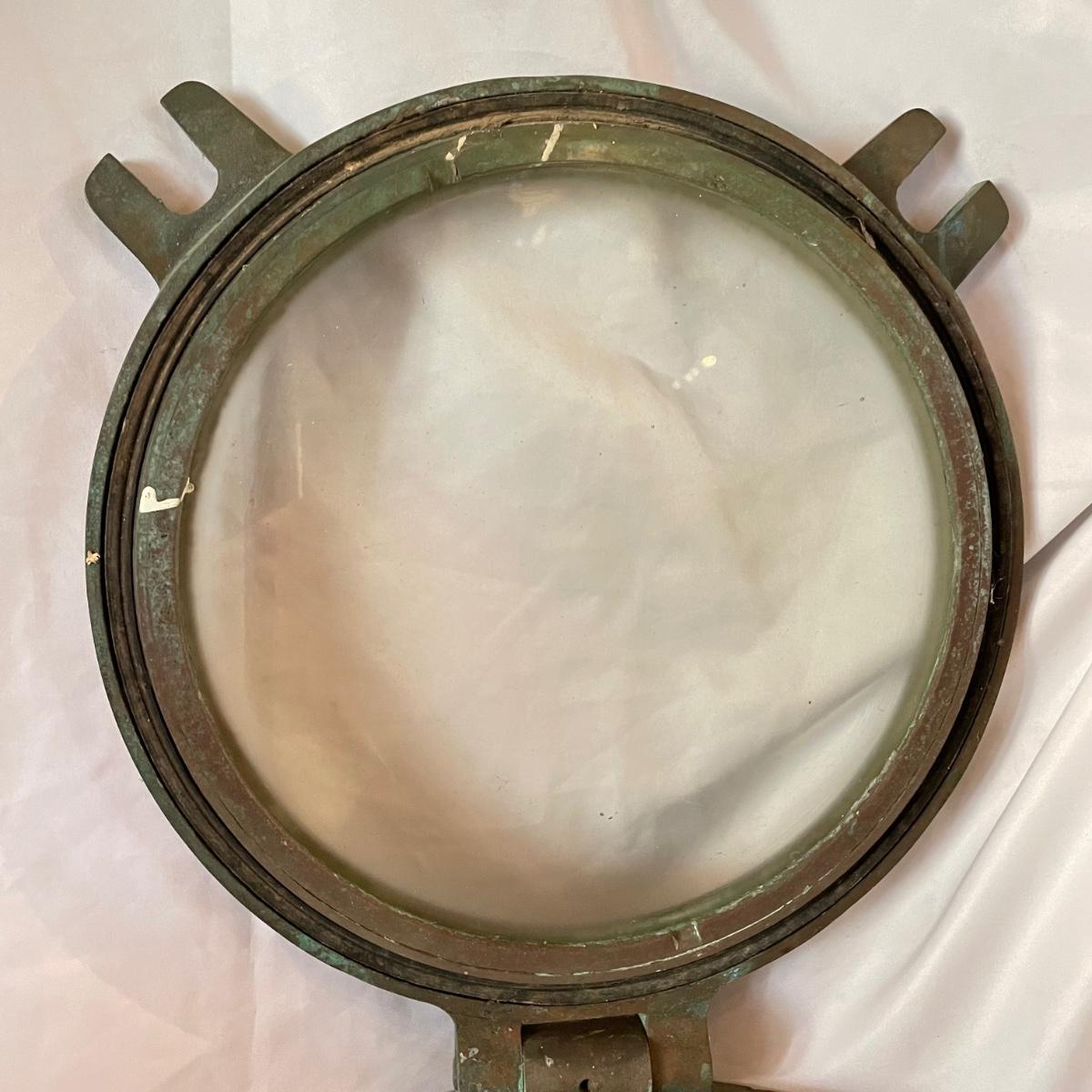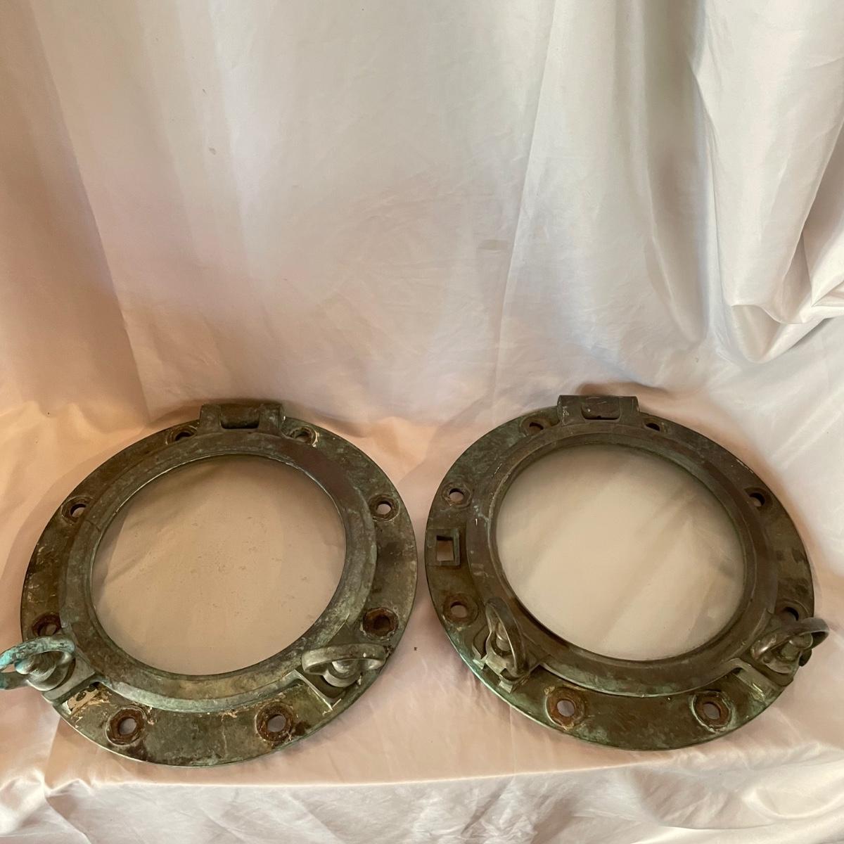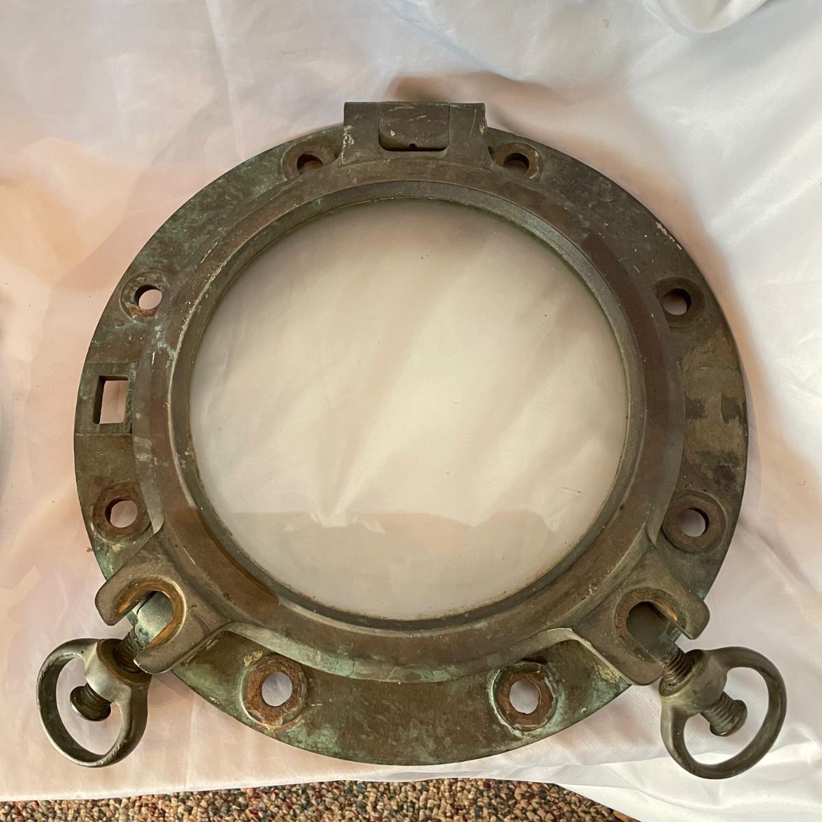 Two vintage, very similar, nautical porthole windows. Each window is in working order and shows some oxidation on the heavy metal frame. Each window is about 9.5” in diameter with the frames measuring approximately 15” in diameter. See images. Shipping available. Please call UPS with dimensions at 828-252-6930 for a shipping quote prior to bidding.