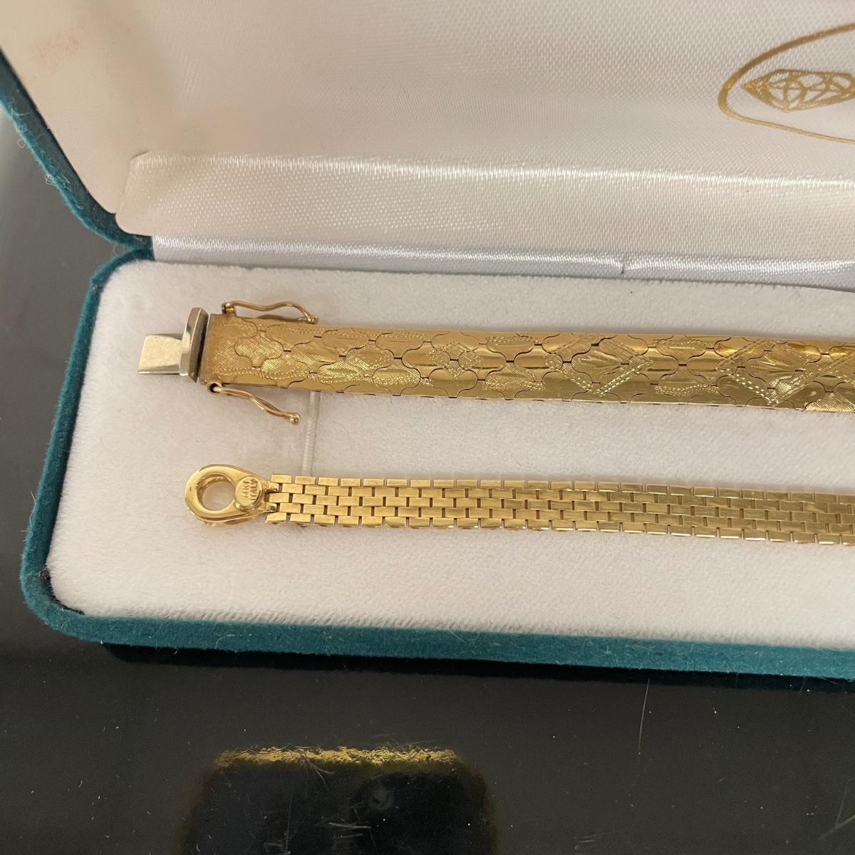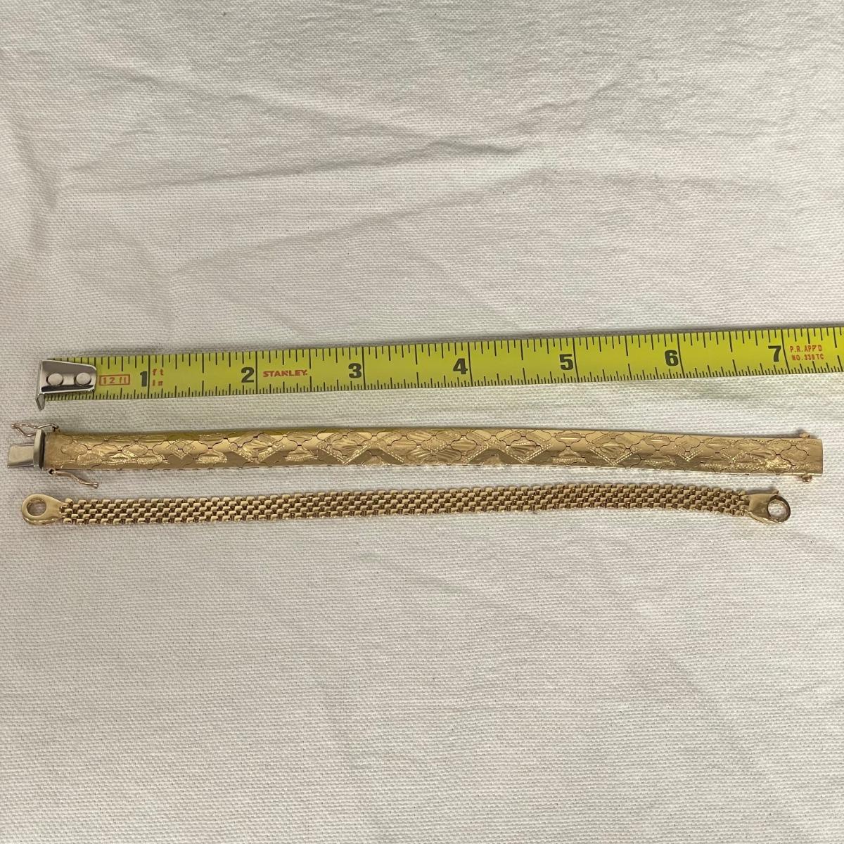 Two stunning bracelets that can easily be both elegant and everyday fashions. Both are marked Italy and 14K or 14KT. See images. Dark teal Dean bracelet box is included. See images. Shipping available. All sales are final. No returns or refunds. Please bid accordingly. Starting bid is at or near melt value.