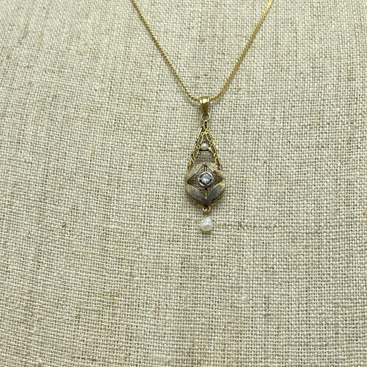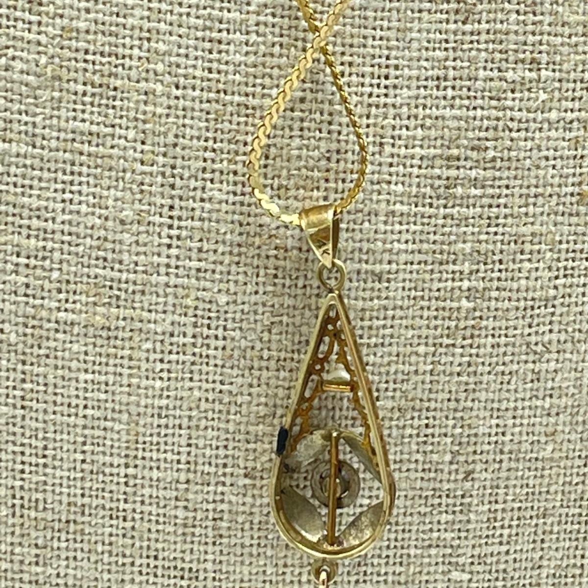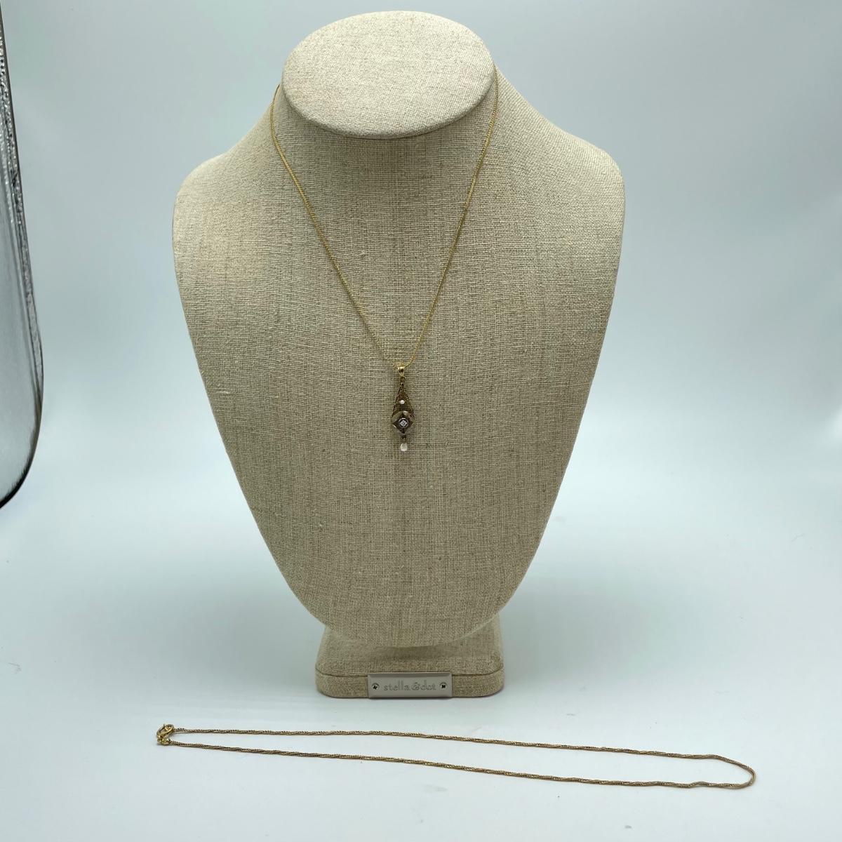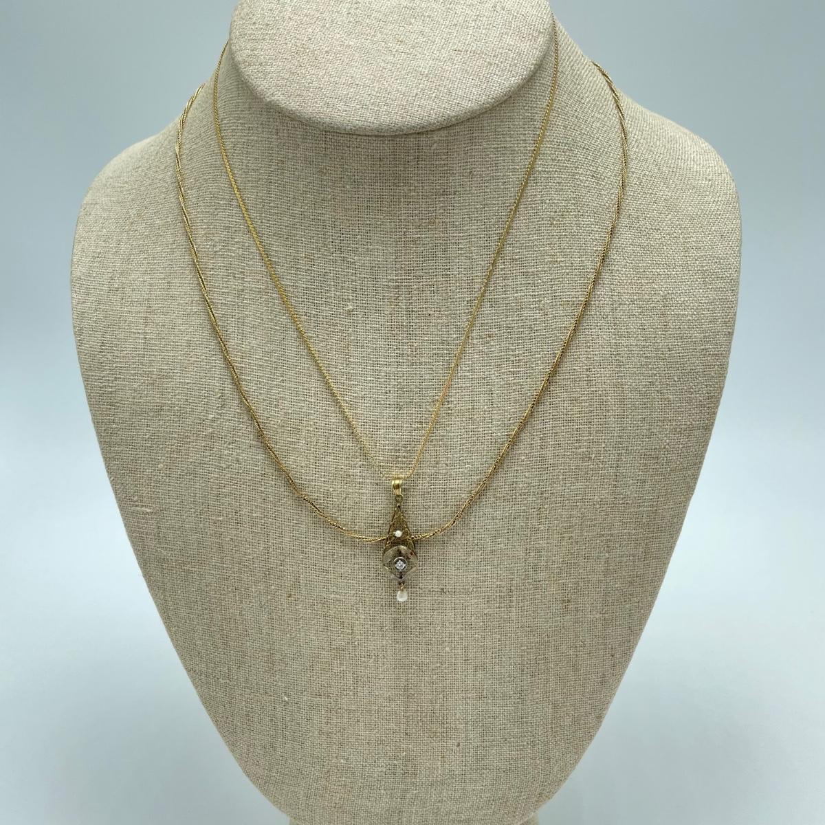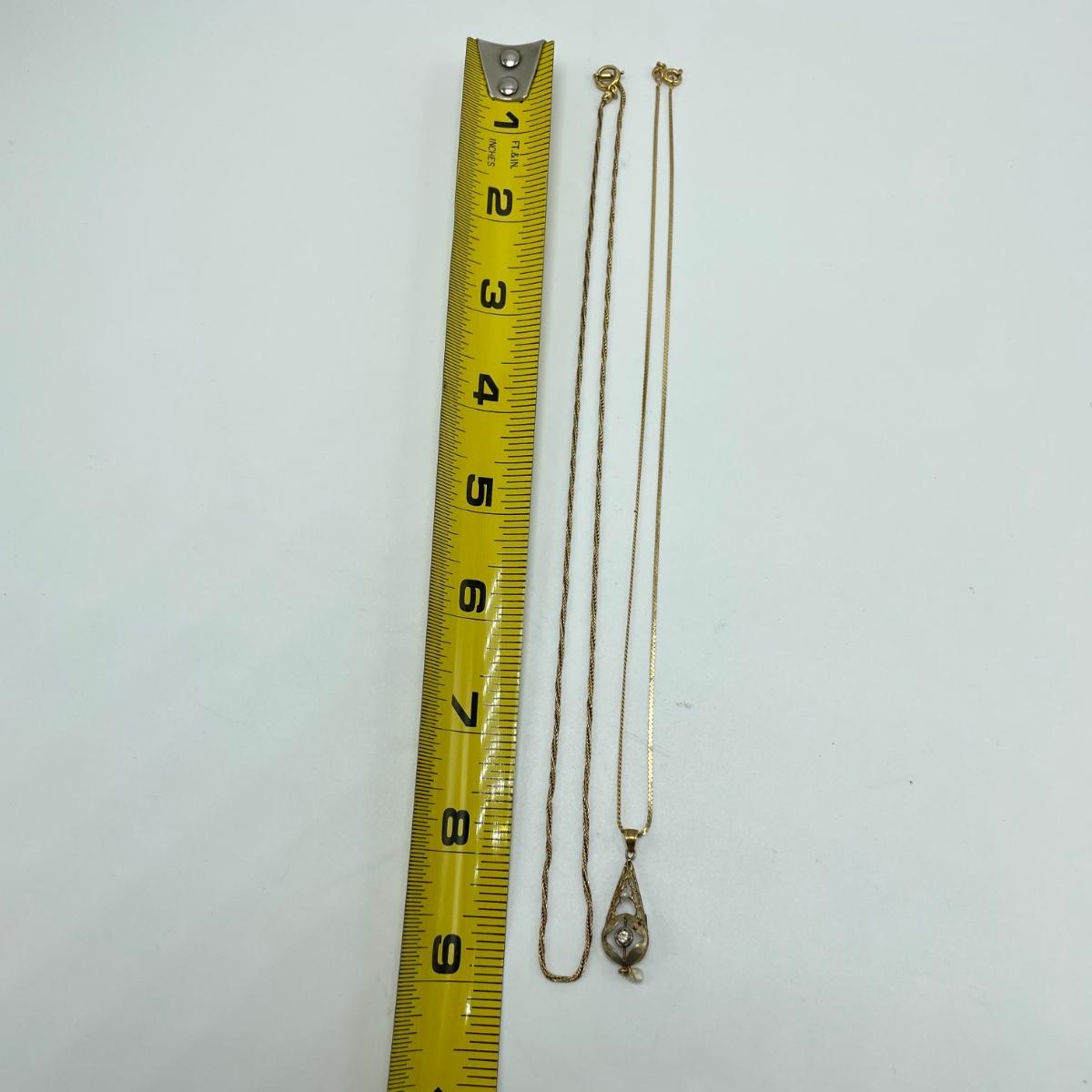 Two chains, one marked 14K and the other marked 14KT plus one pendant marked 14K. The gem did not register on our diamond tester. Starting bid is at or near melt value. See images. Shipping available.