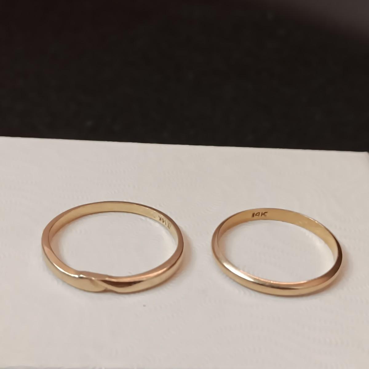 TWO 14K GOLD BANDS TOTAL WEIGHT 2.98g SIZES 6 1/2 & 7 1/4