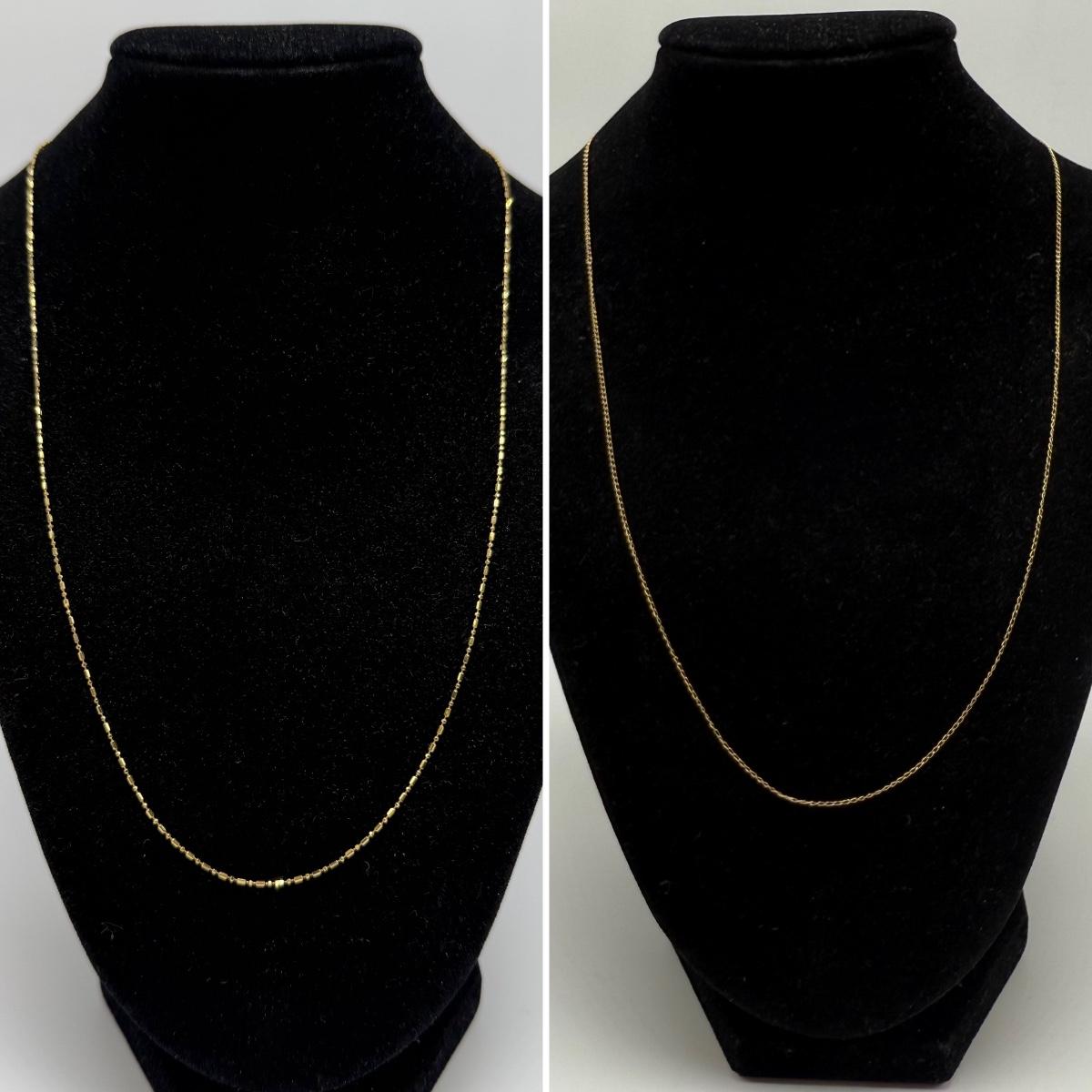 Two chain necklaces stamped 14K. They are both approximately 20”long. See photos for other hallmarks.