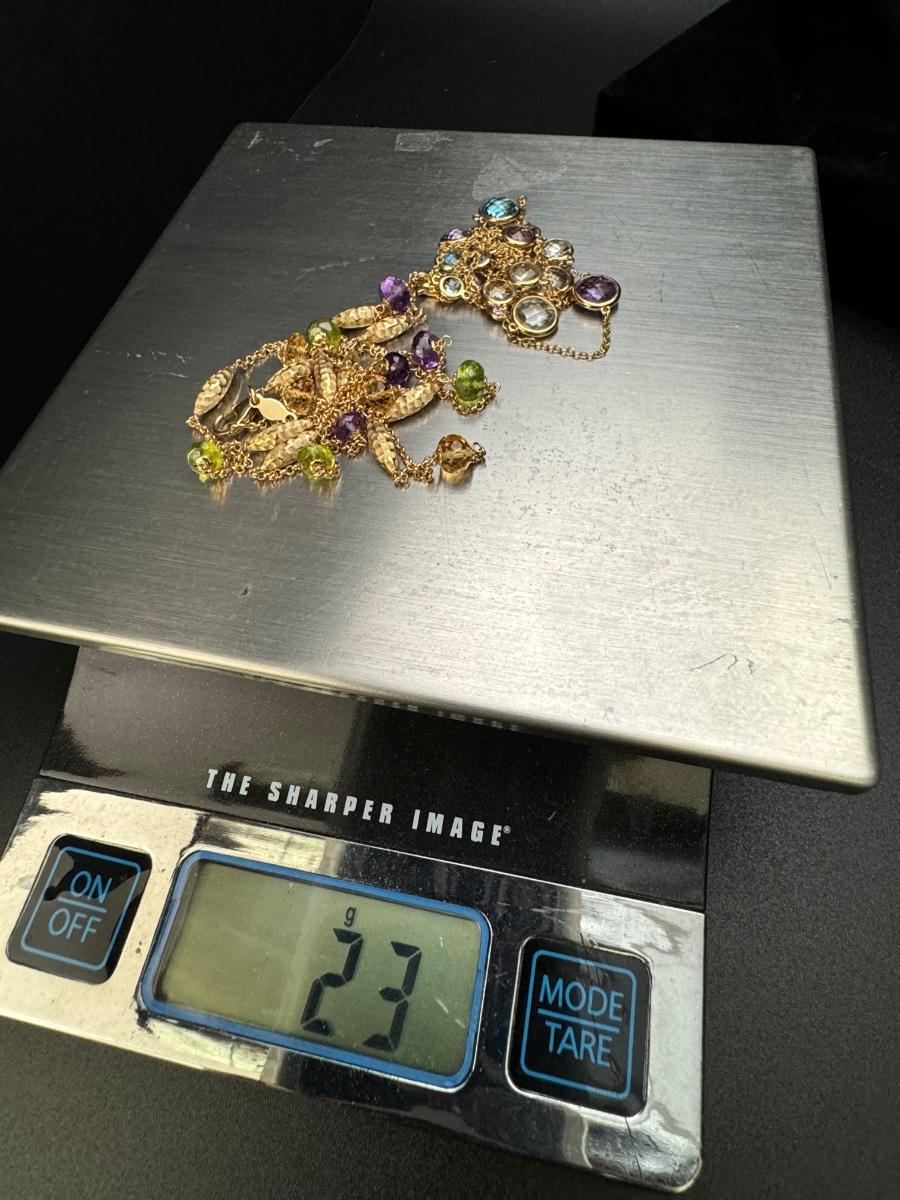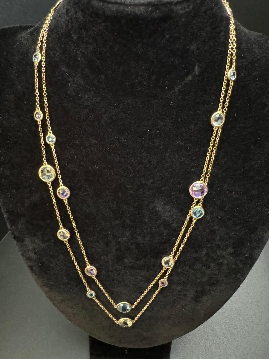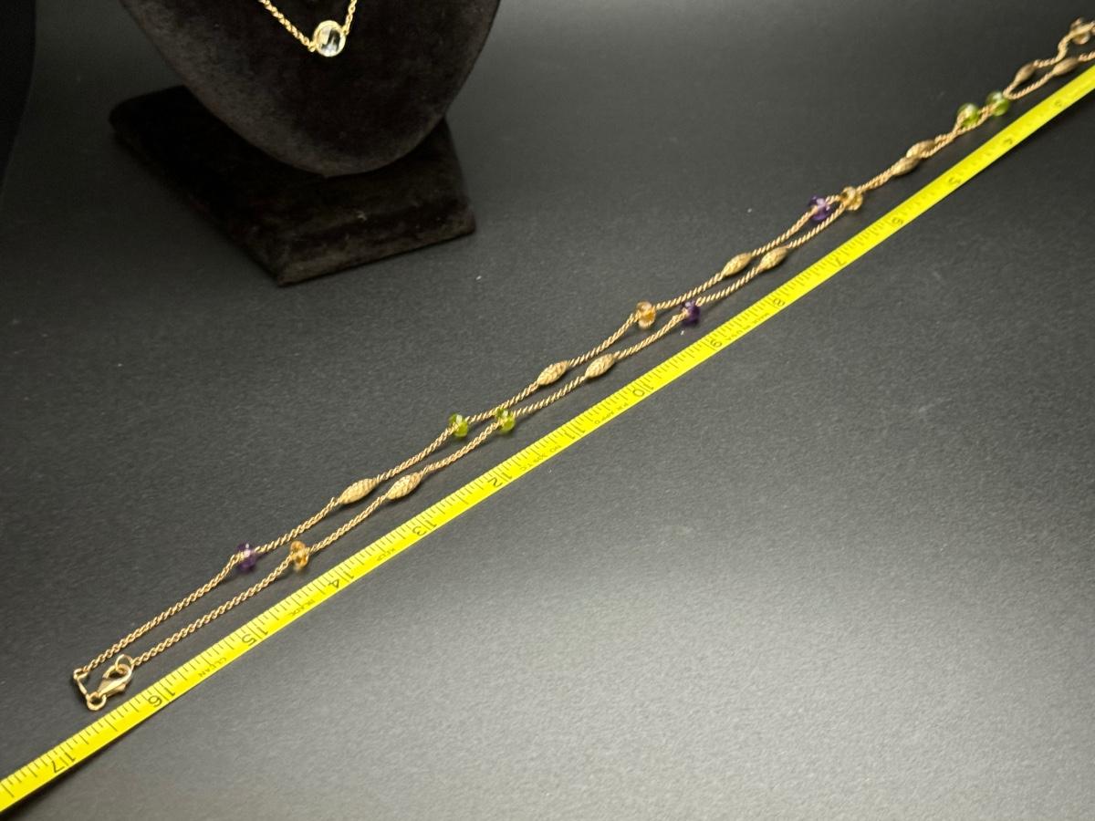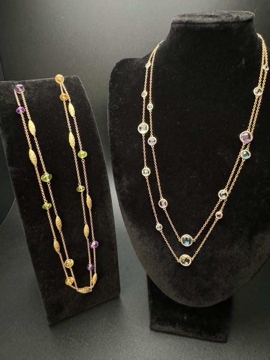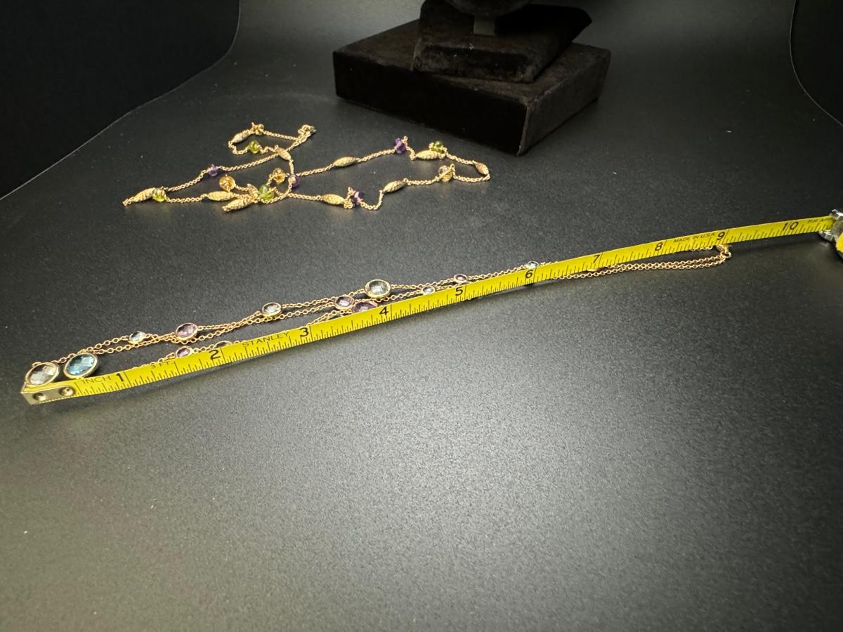 Two 14K Gold Necklaces with Multi Colored Gemstones