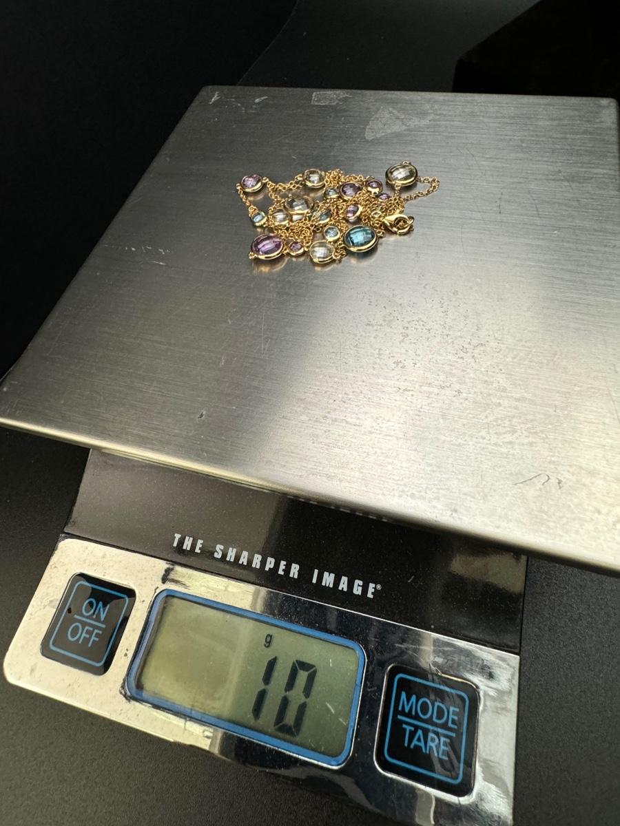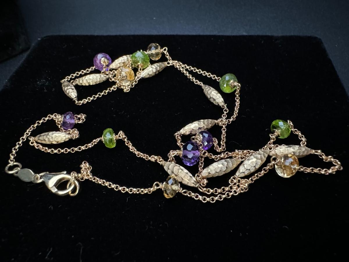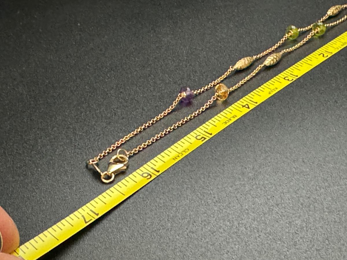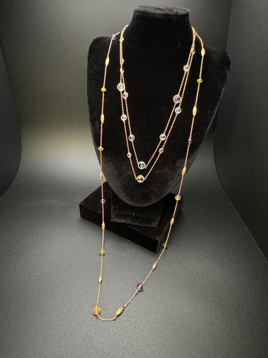 Two 14K Gold Necklaces with Multi Colored Gemstones