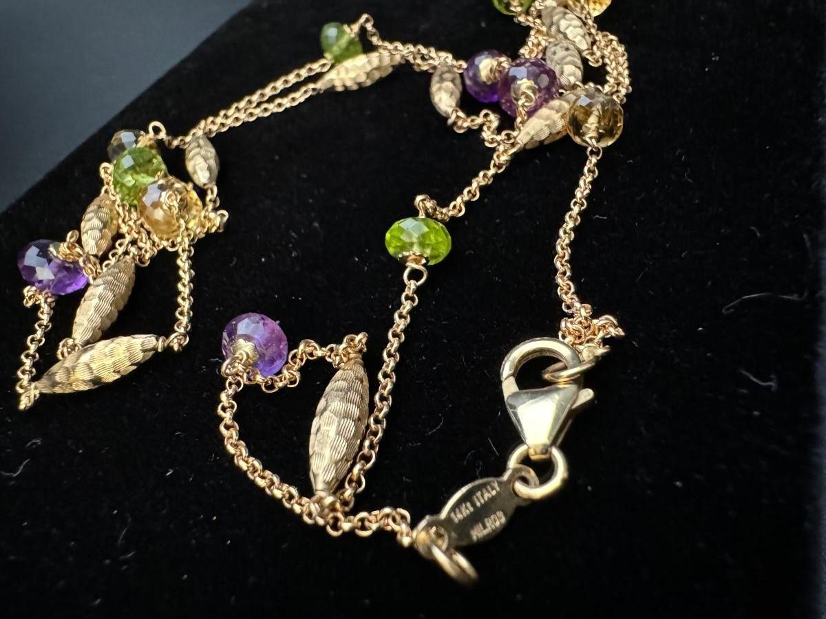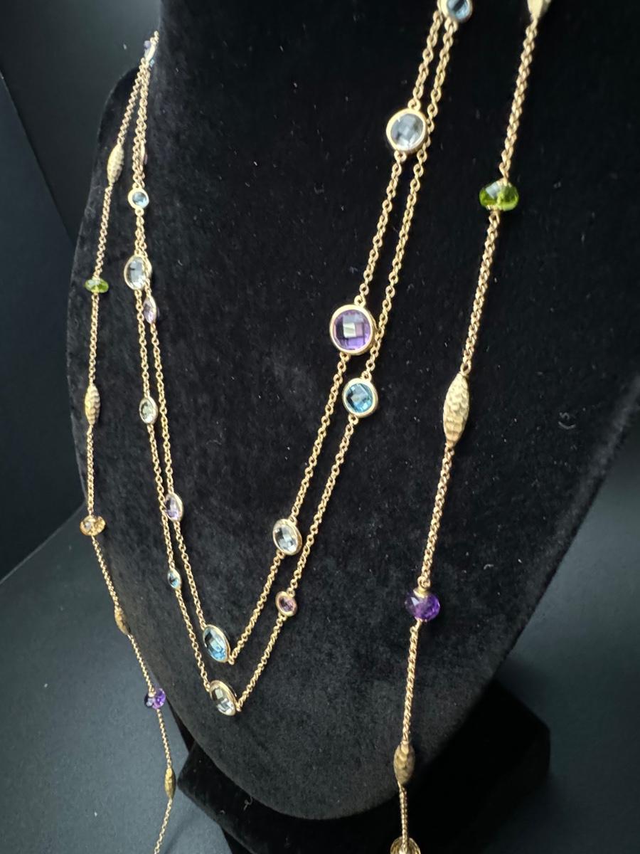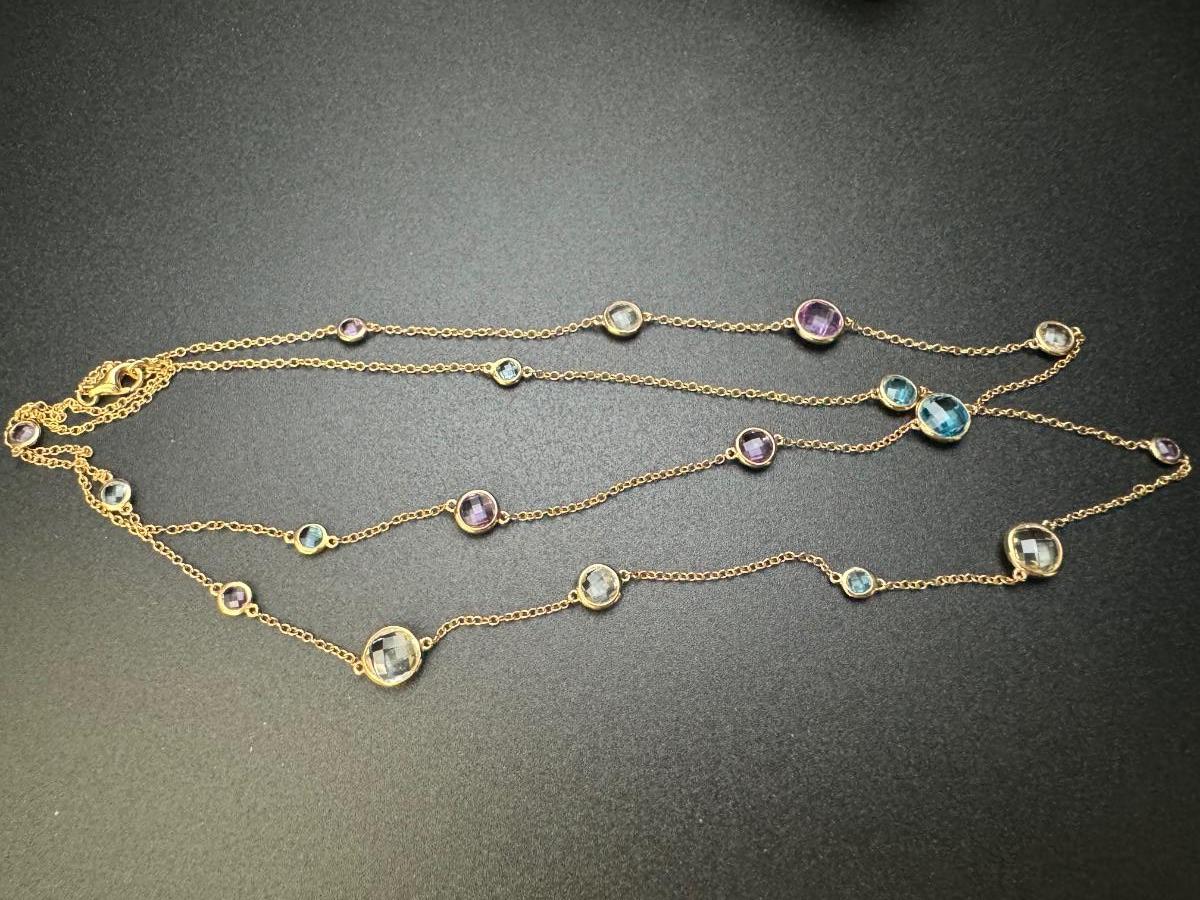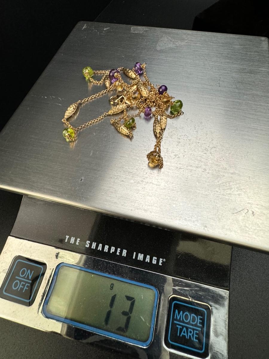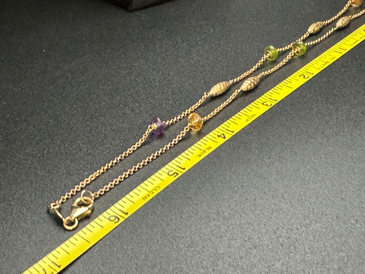 Two 14K Gold Necklaces with Multi Colored Gemstones