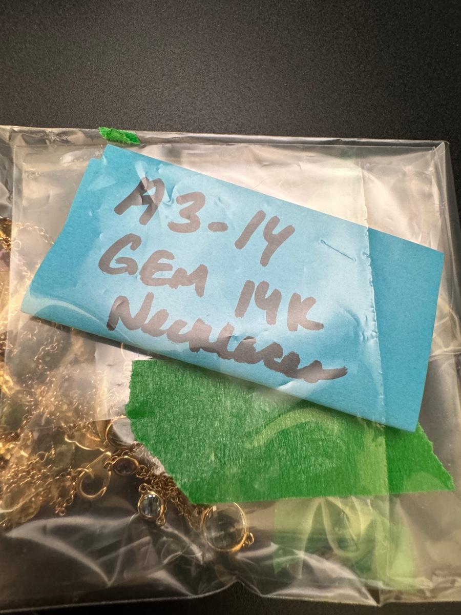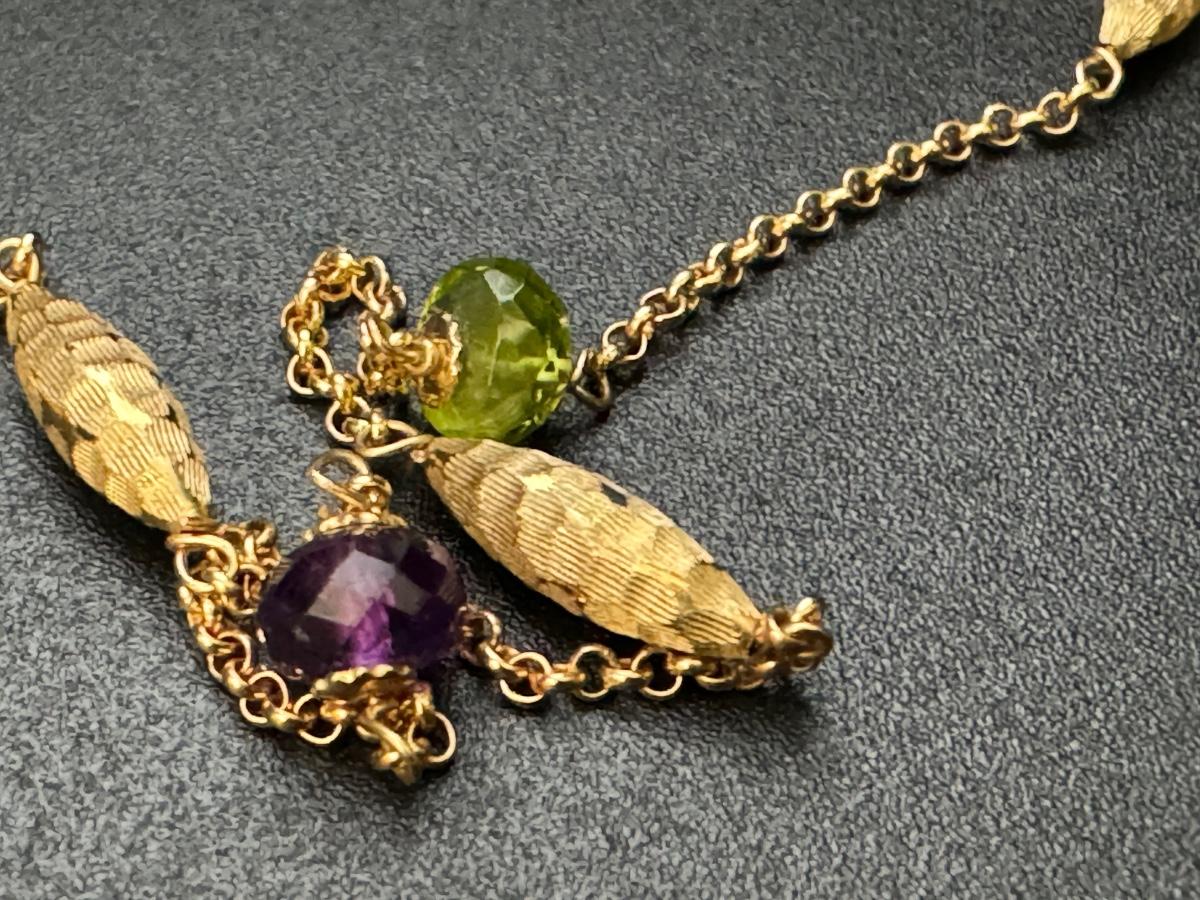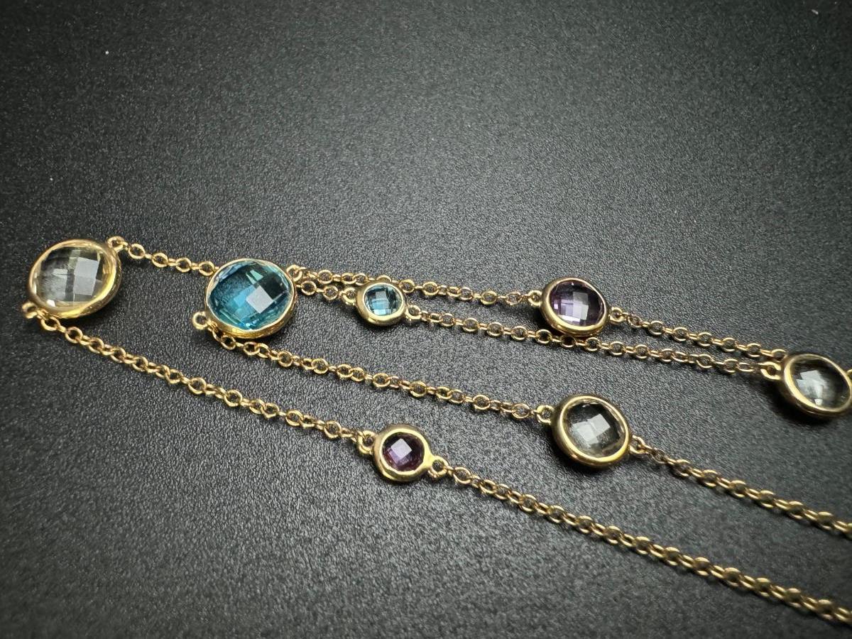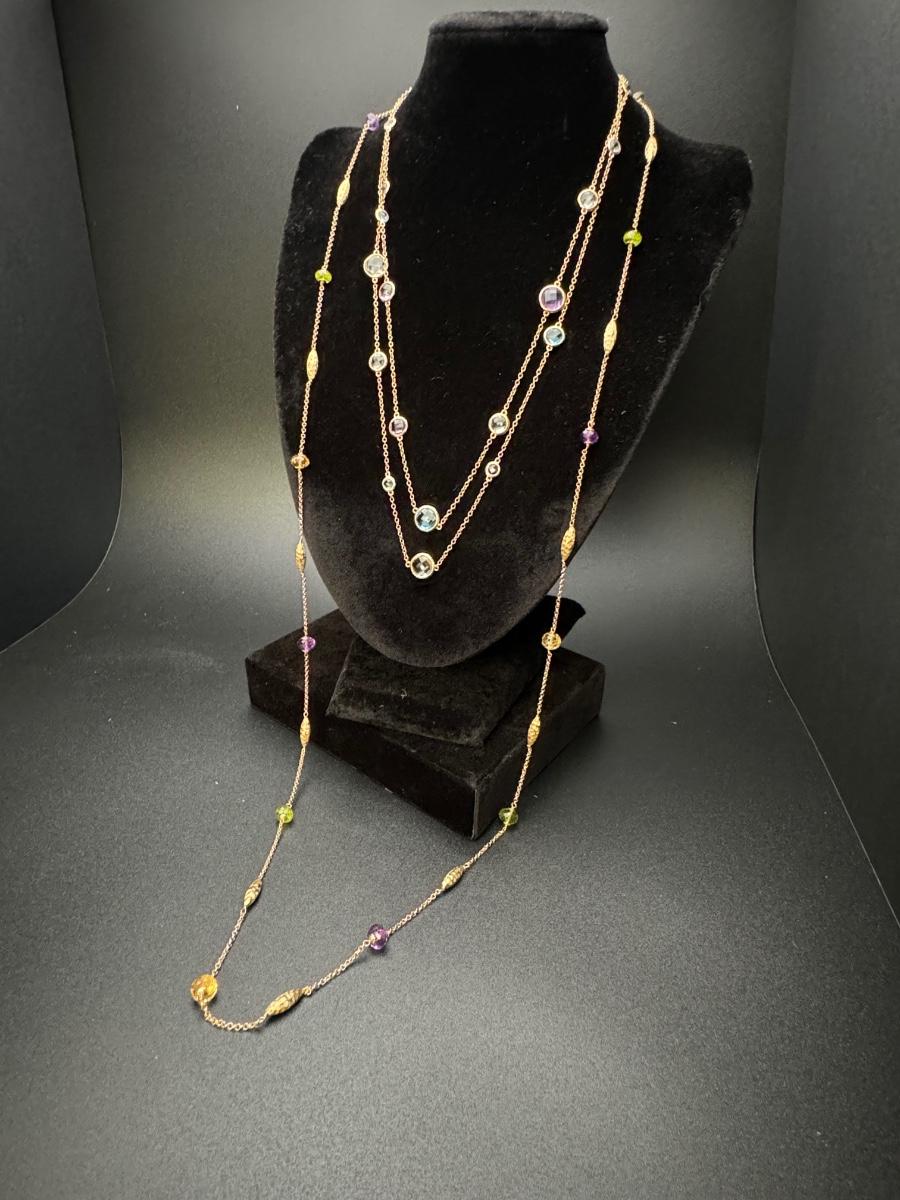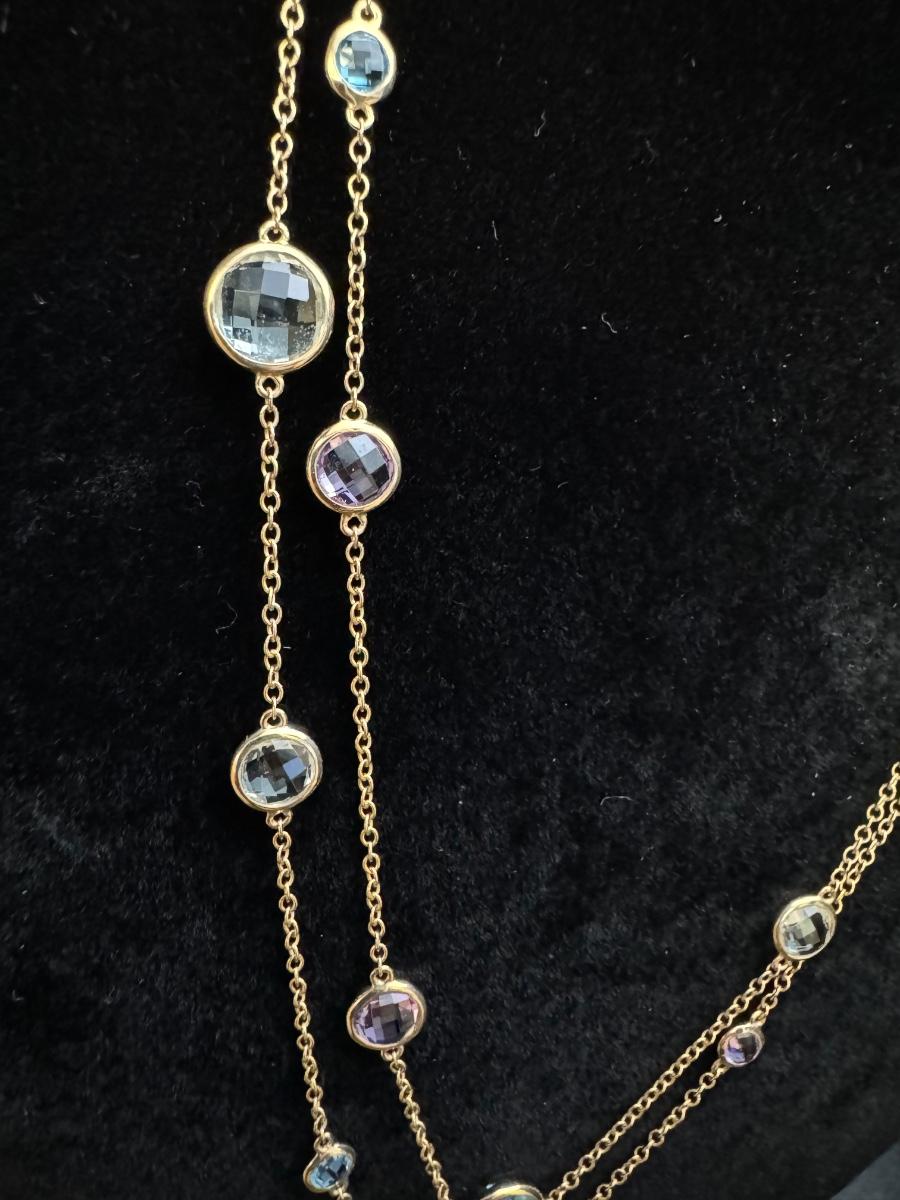 Two 14K Gold Necklaces with Multi Colored Gemstones