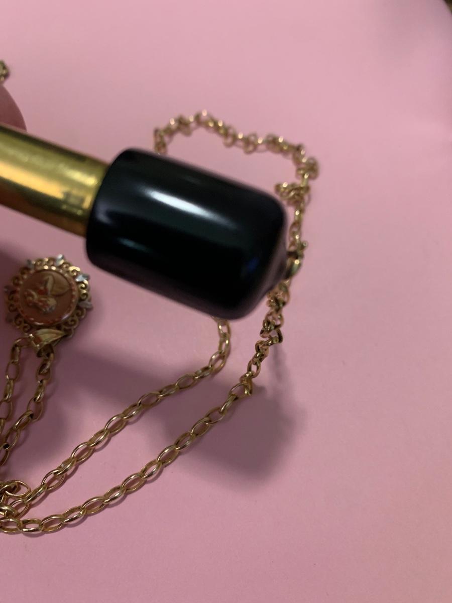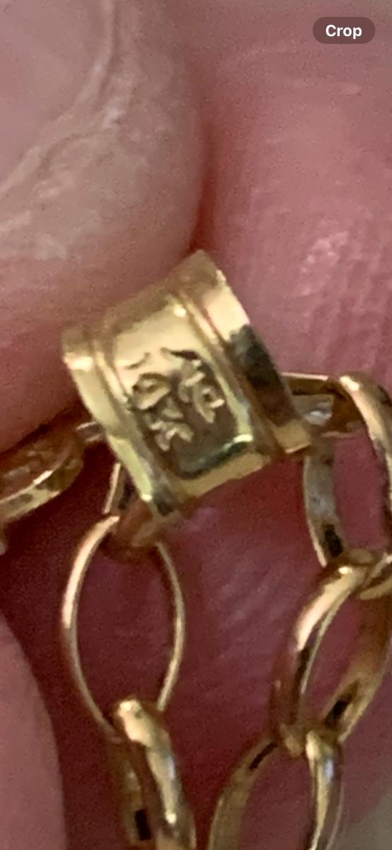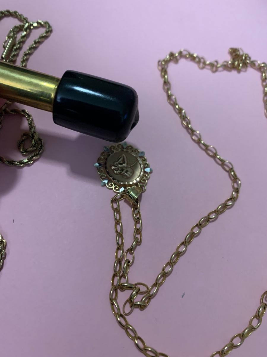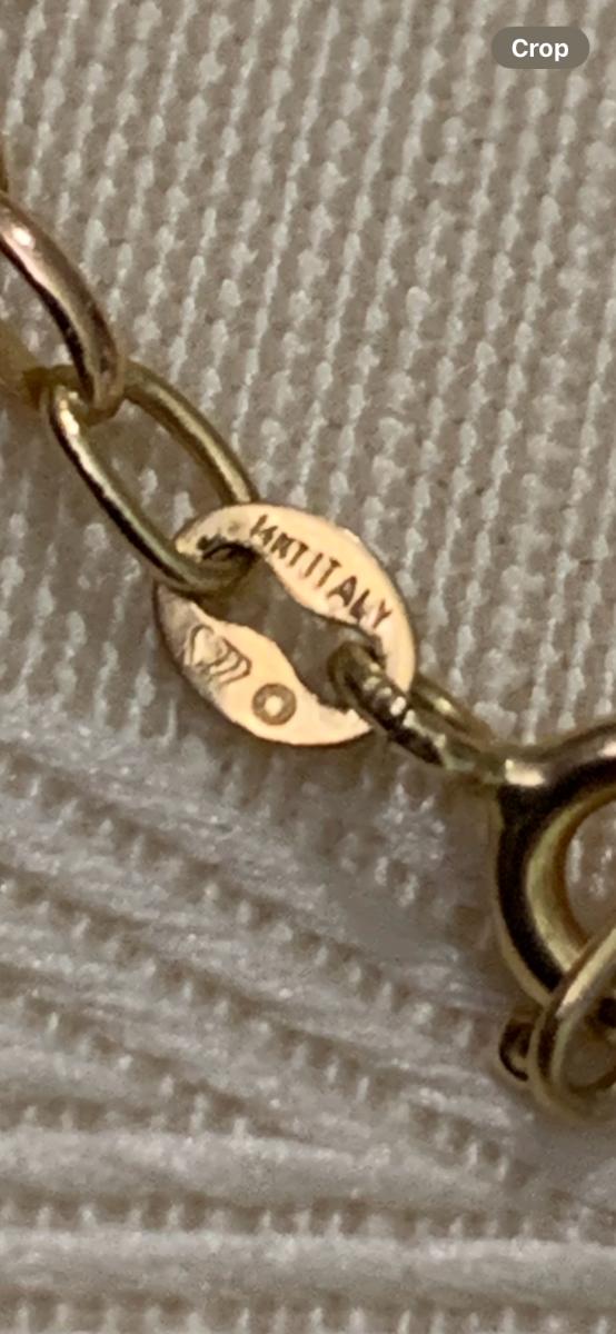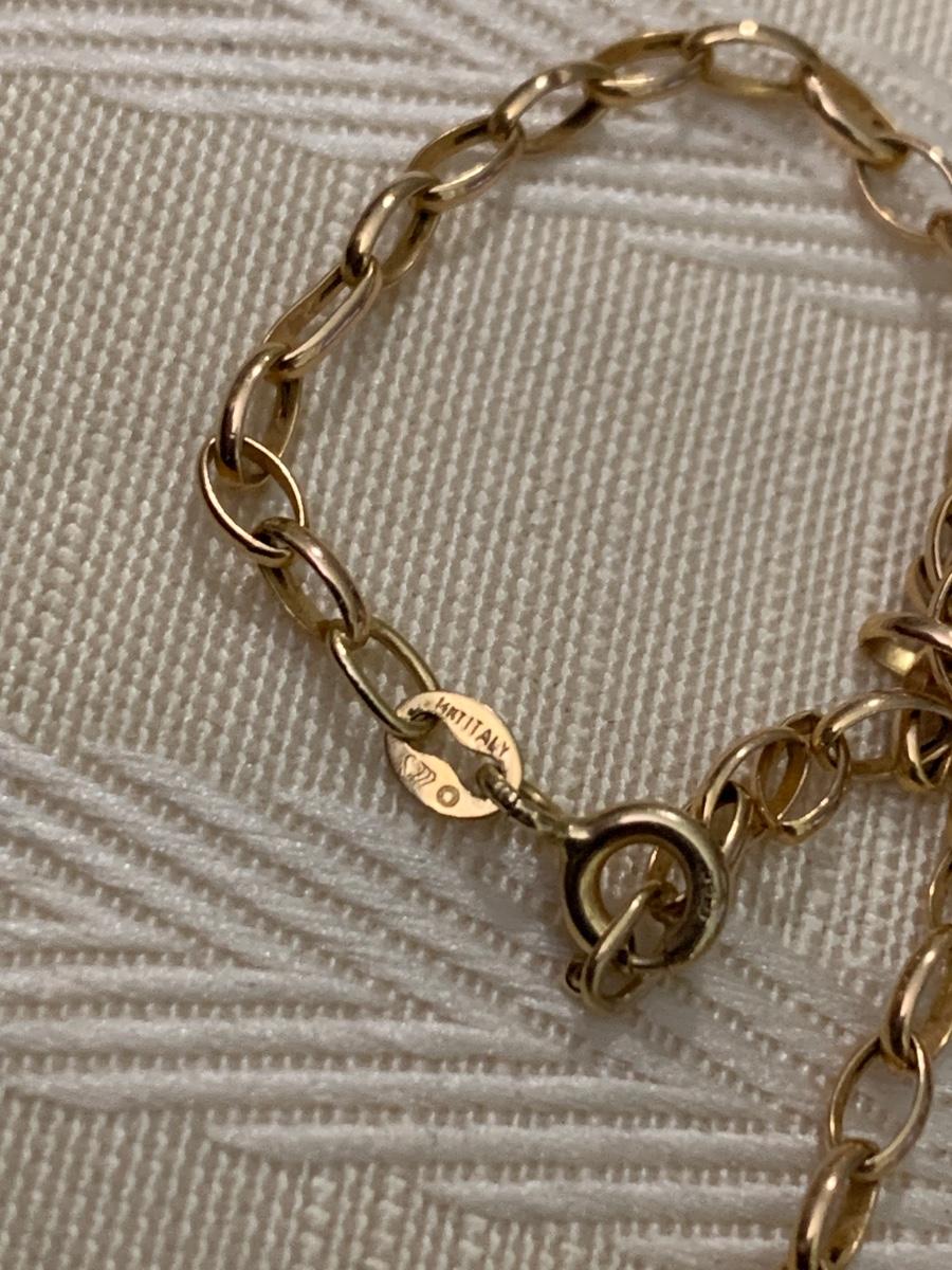 Every piece is 14k Yellow Gold with the exception of only the clasp on the chain shown.