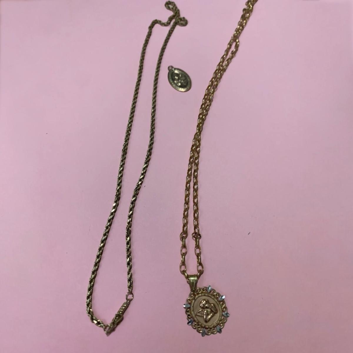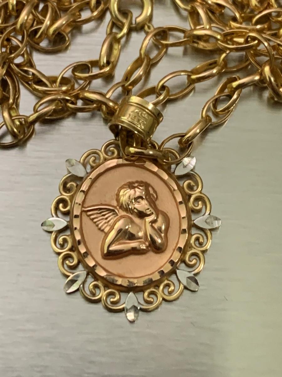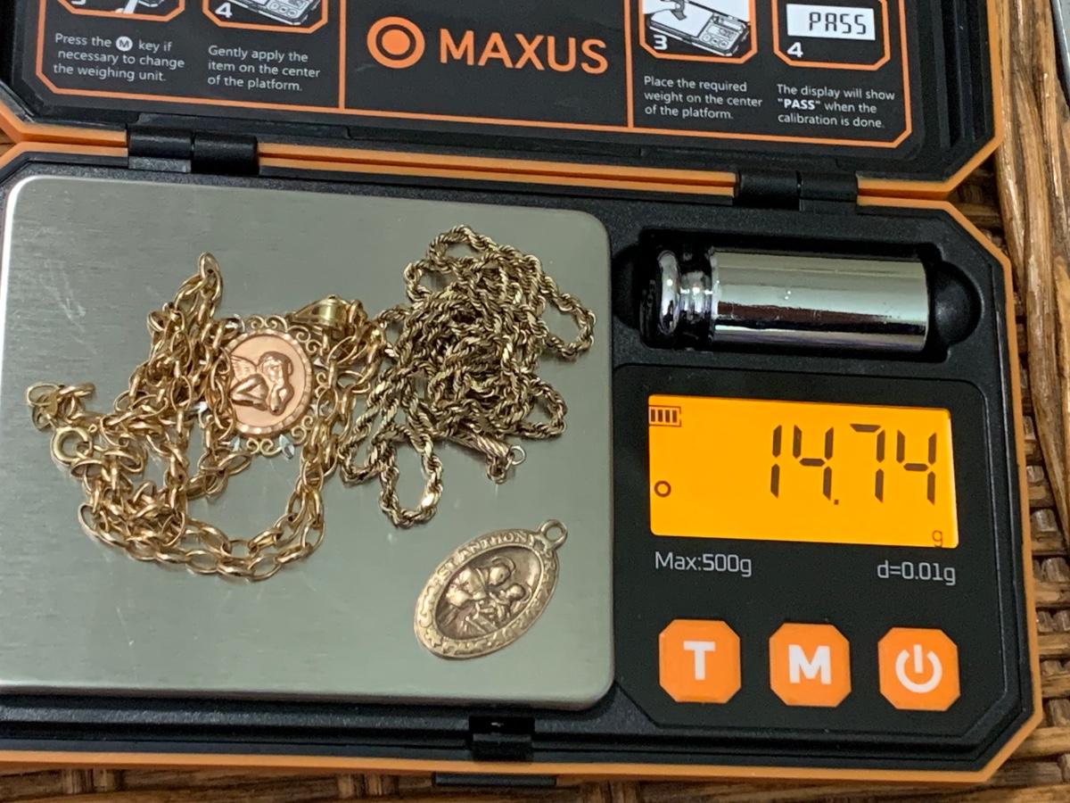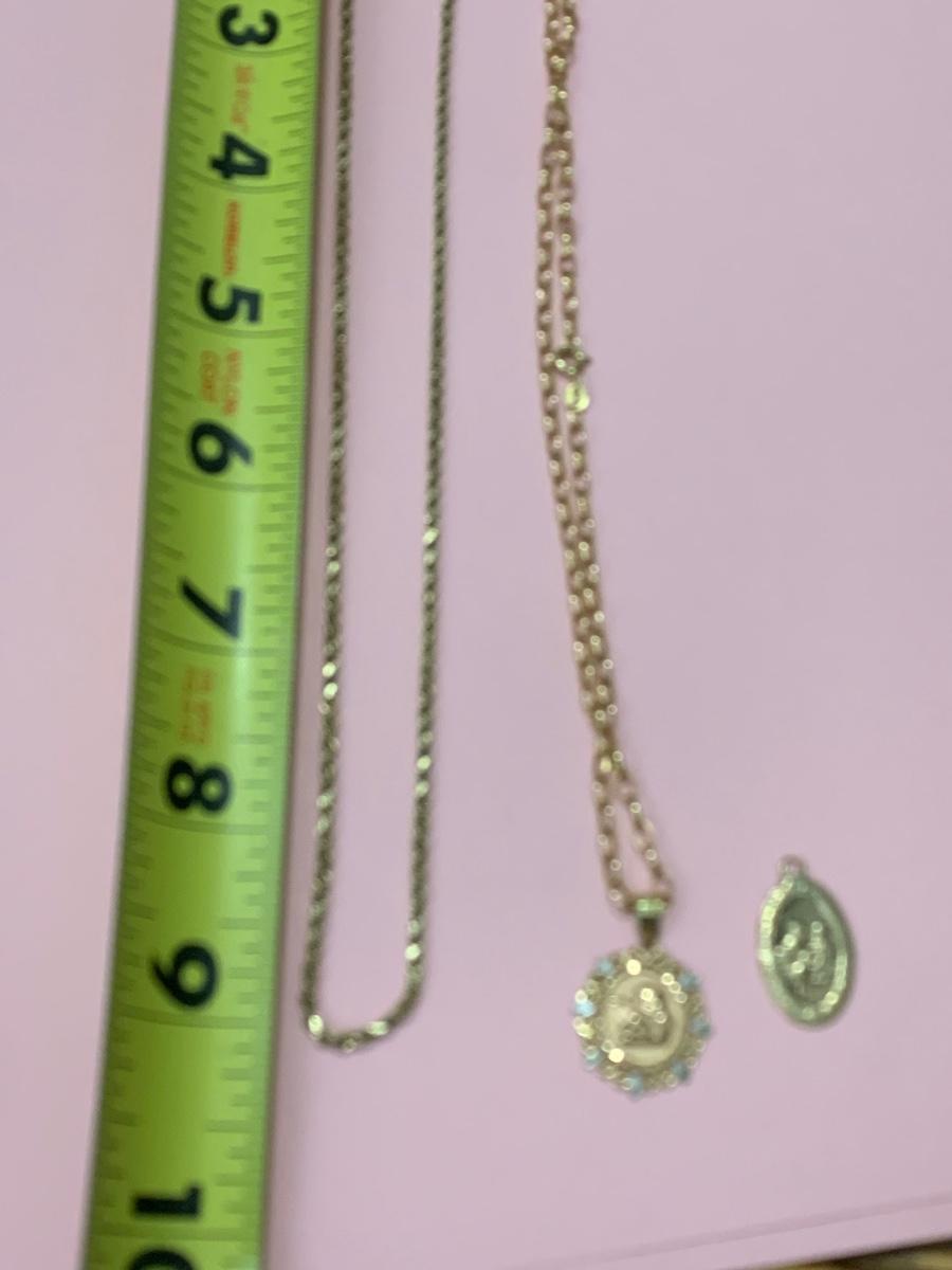 Two 14k Gold Religious Pendants + Two 14k Gold Chains