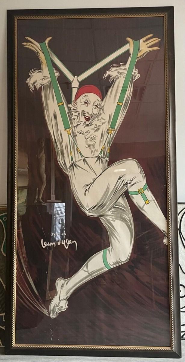 Description: This is a magical, classic and oversize Jean D'ylen poster for Silver nylon suspenders. The coloration and boldness of this poster are highly reminiscent of the work of D'Ylen's teacher, Leonetto Cappiello. Based on the clown's excited look, these Silver suspenders seem to work like a charm! Measurements: 42 x 89, 48 x 92 inches. NOTE: Item Sold and Shipped without Frame! Please contact us if you wish to purchase the poster with the Frame!