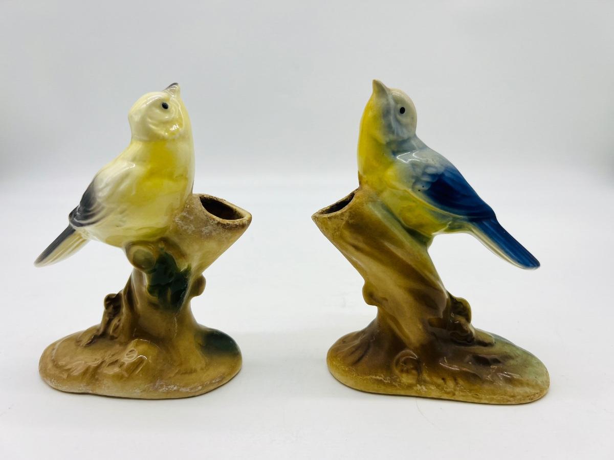 Two 1960s Royal Copley Porcelain Bird Figurine Bud Vase Measures 4 1/2 half inches tall