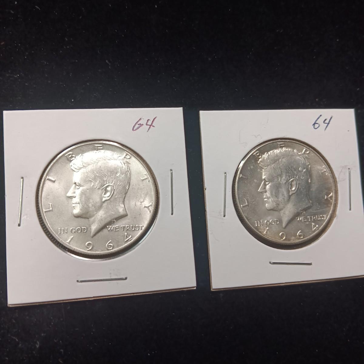 TWO 1964 SILVER KENNEDY HALF DOLLARS