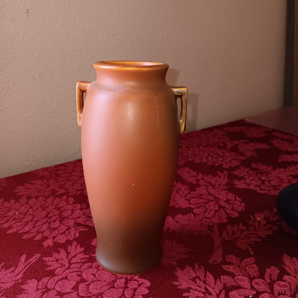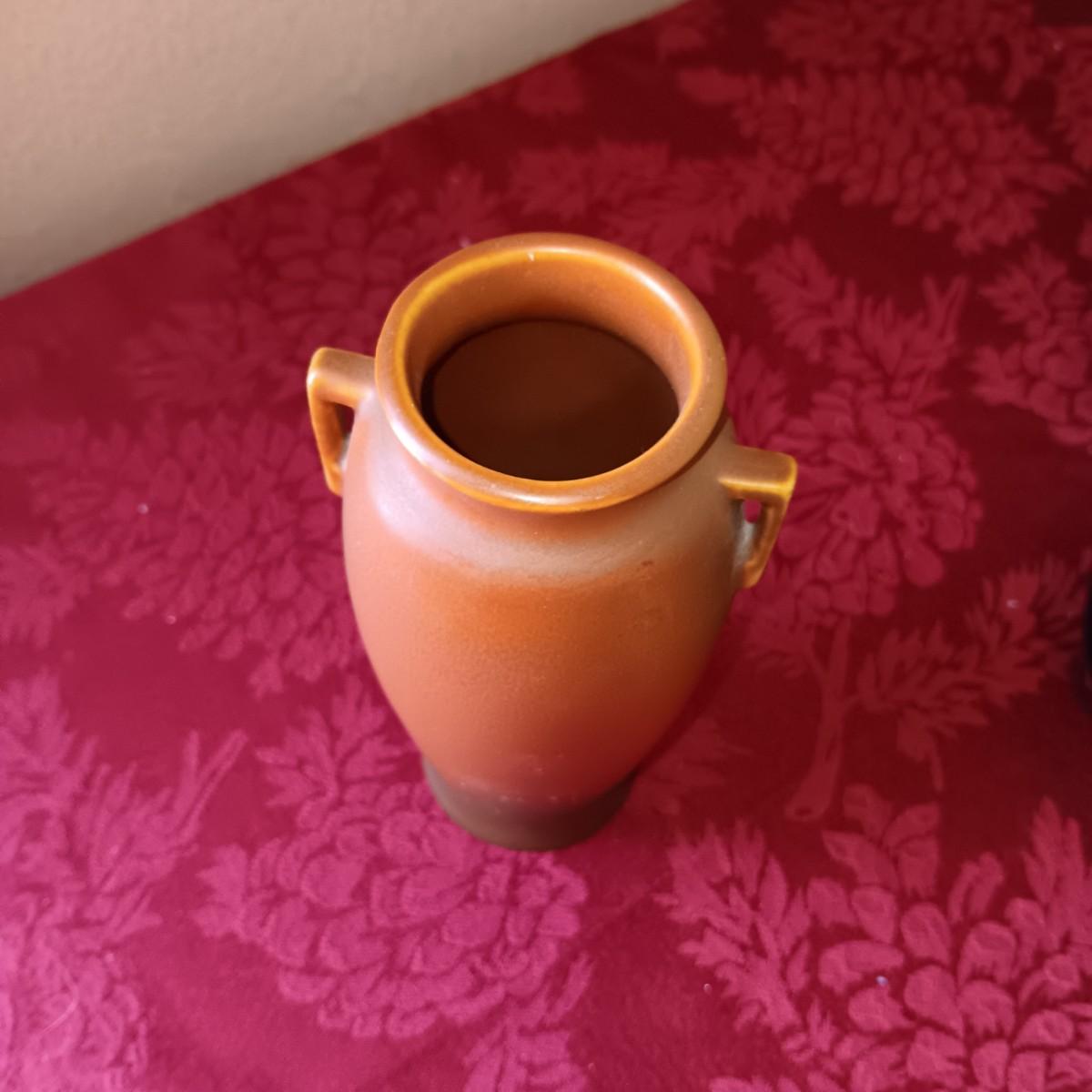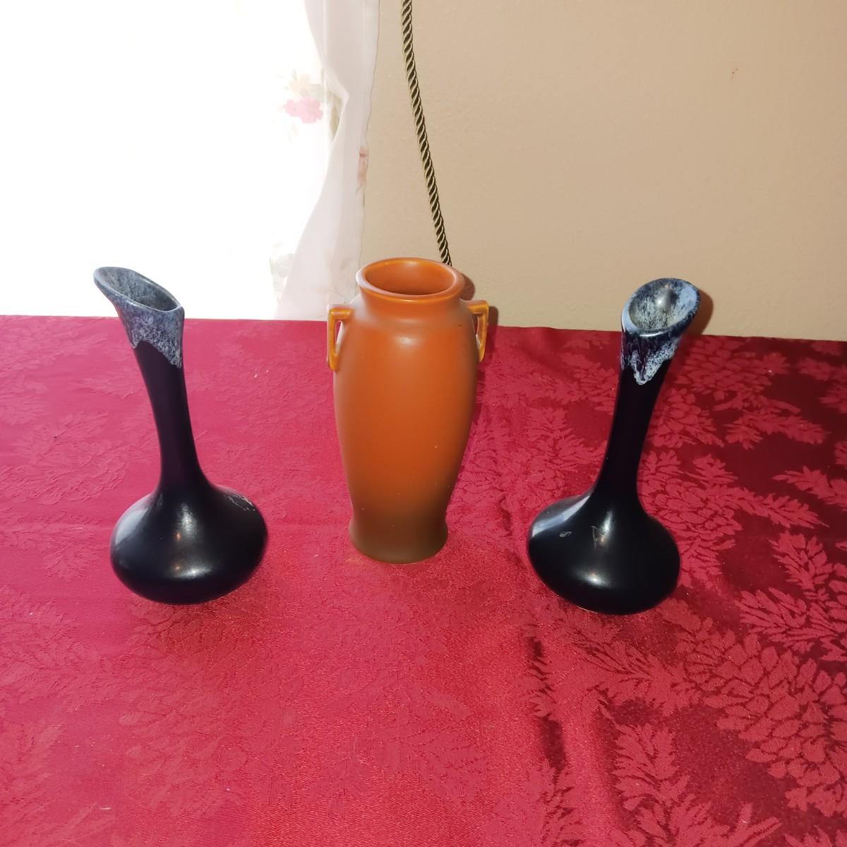 TWO 1966 COLO LIONS NEW YORK VASES AND A BURNT ORANGE CLAY VASE