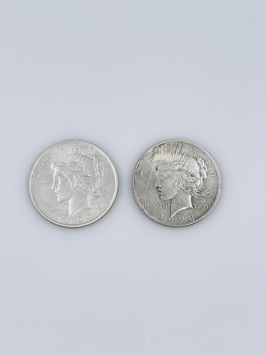 Two (2) ~ 1923 Peace Dollars ~ 90% Silver