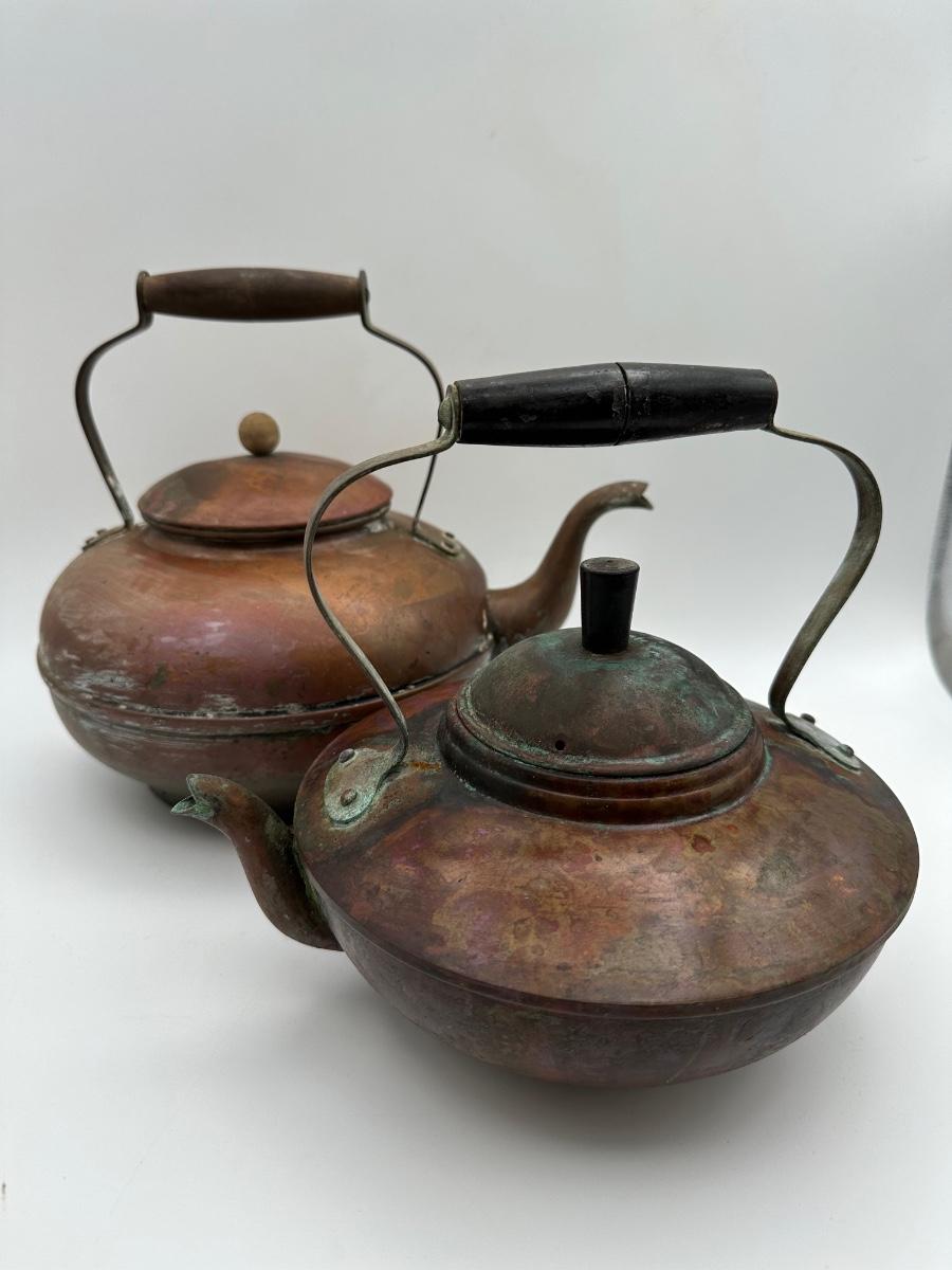 Antique copper kettles