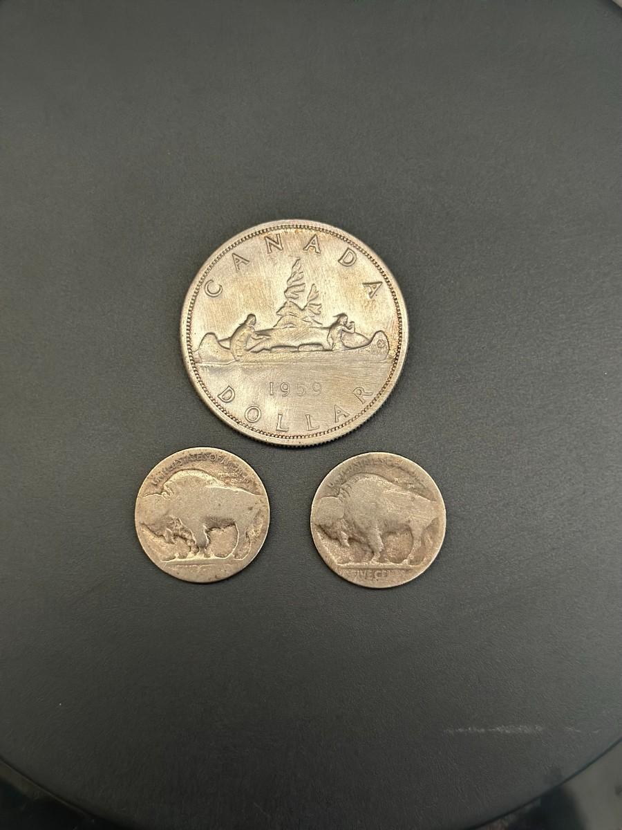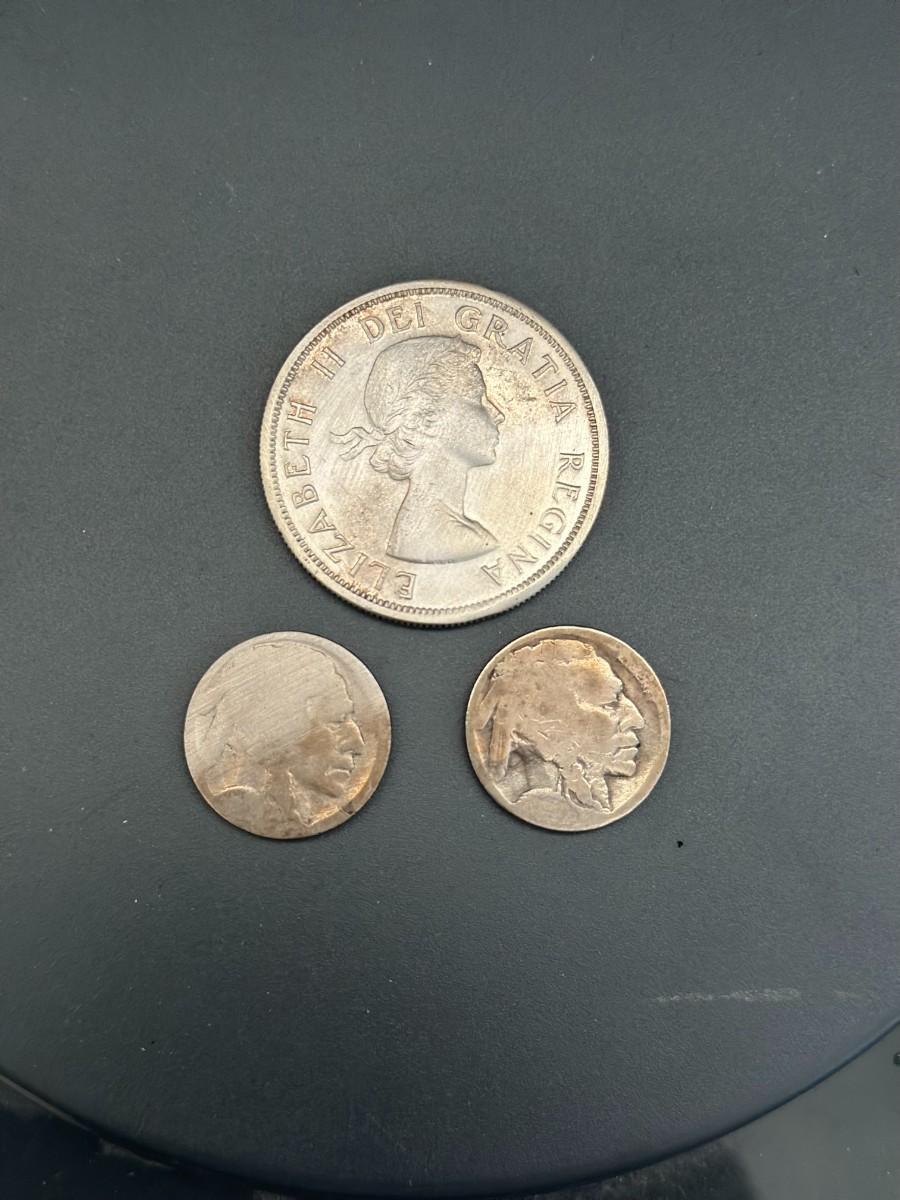 Two (2) Buffalo Nickles / 1959 Canadian Dollar