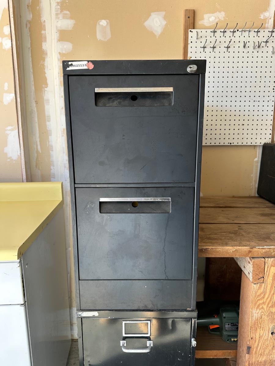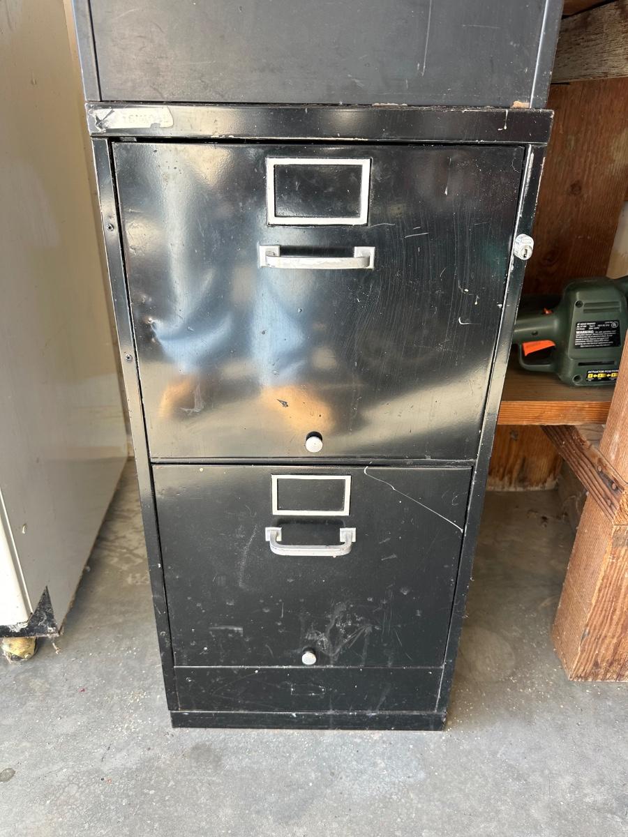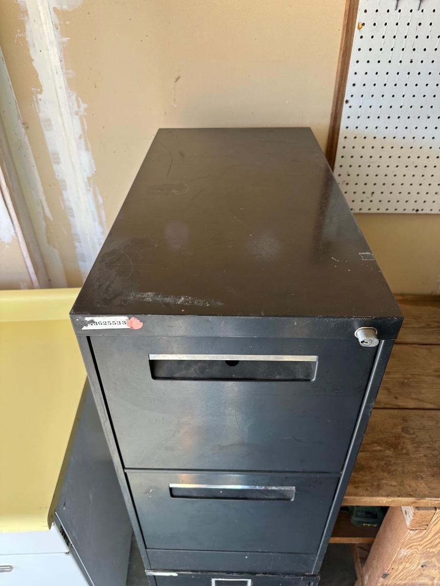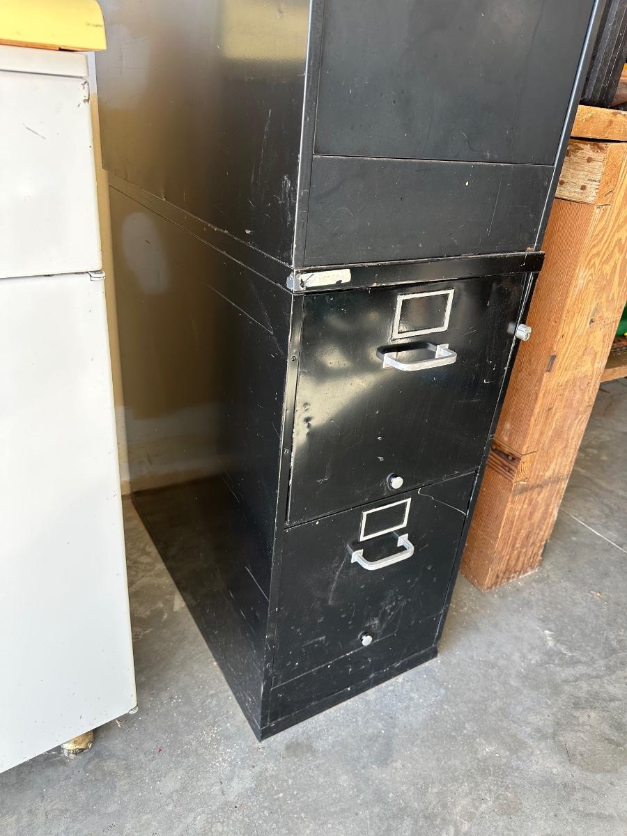 Top file cabinet is 29”H x 15”W x 28-5/8”D