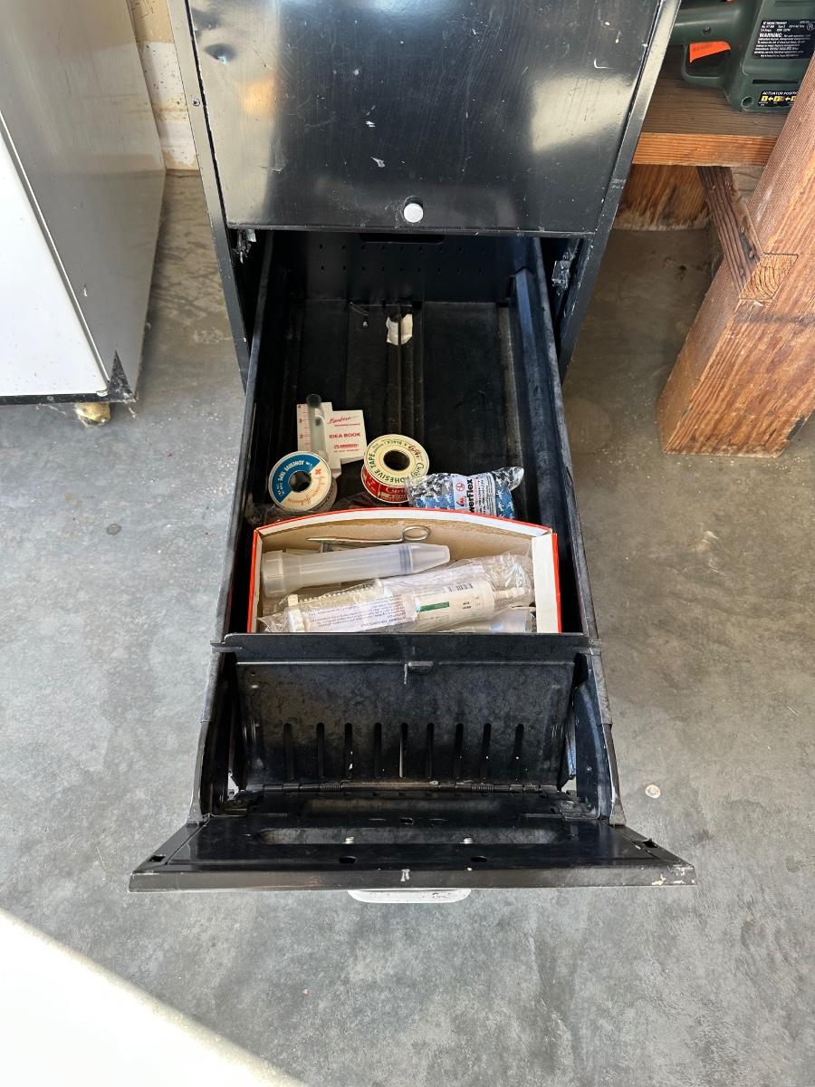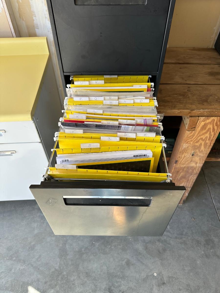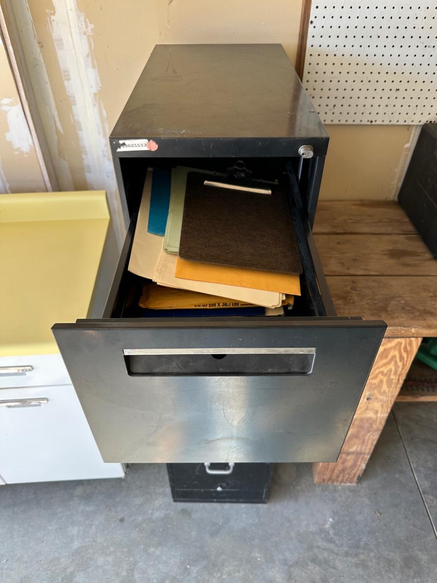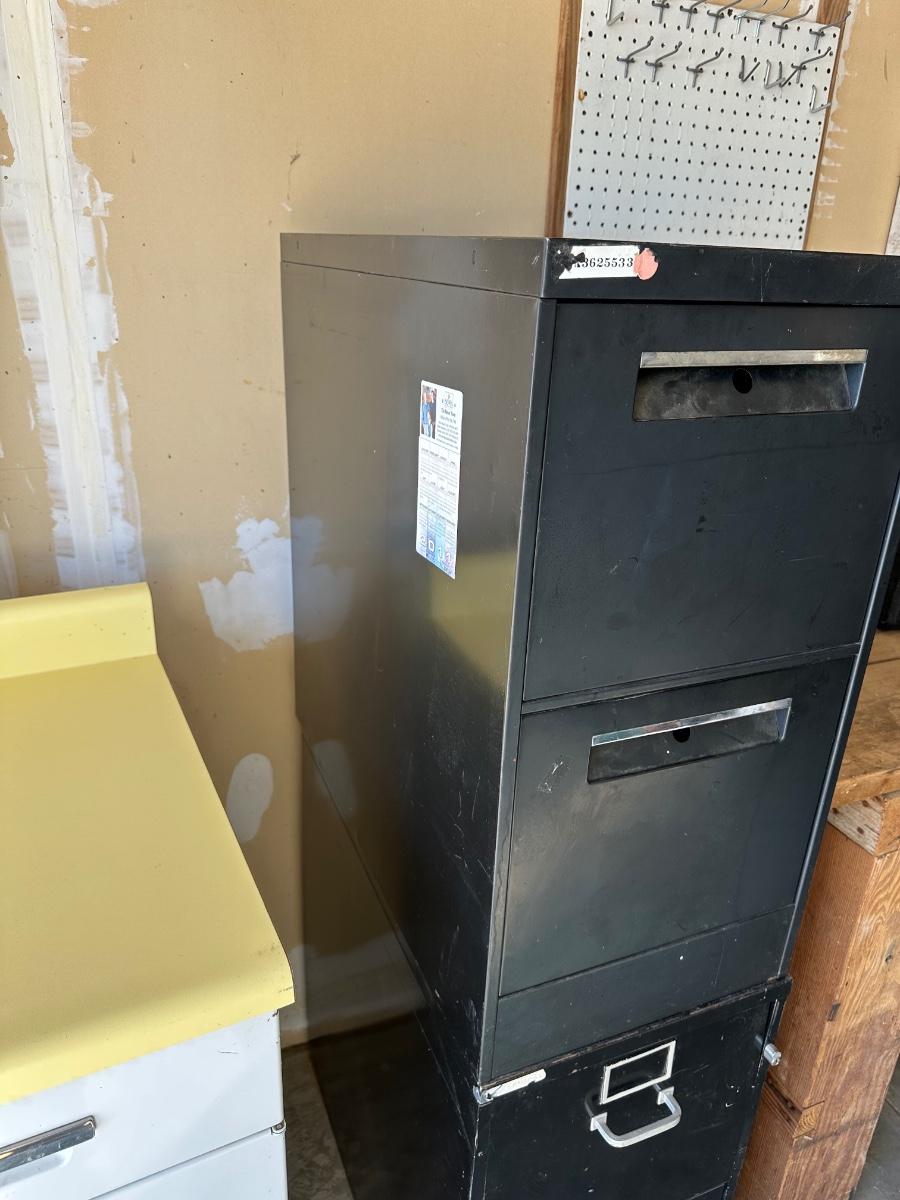 Top file cabinet is 29”H x 15”W x 28-5/8”D