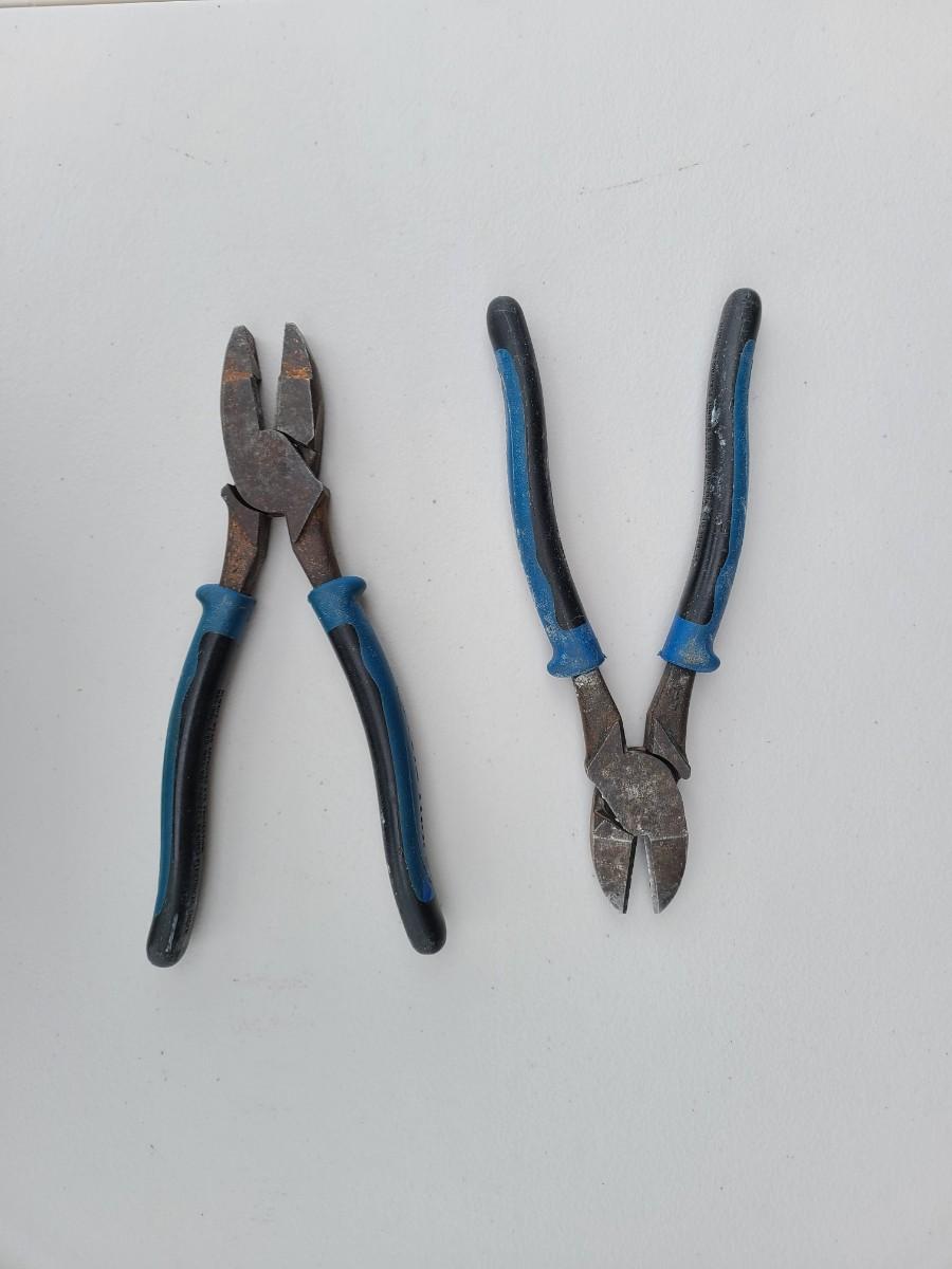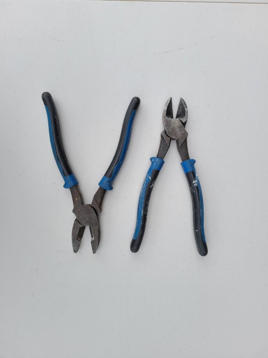 One Klein Snipers and One Klein Cimbi Pliers/Snipers. Both are 91/2 inches in length. Work smoothly, a little paint overspray. See pics.