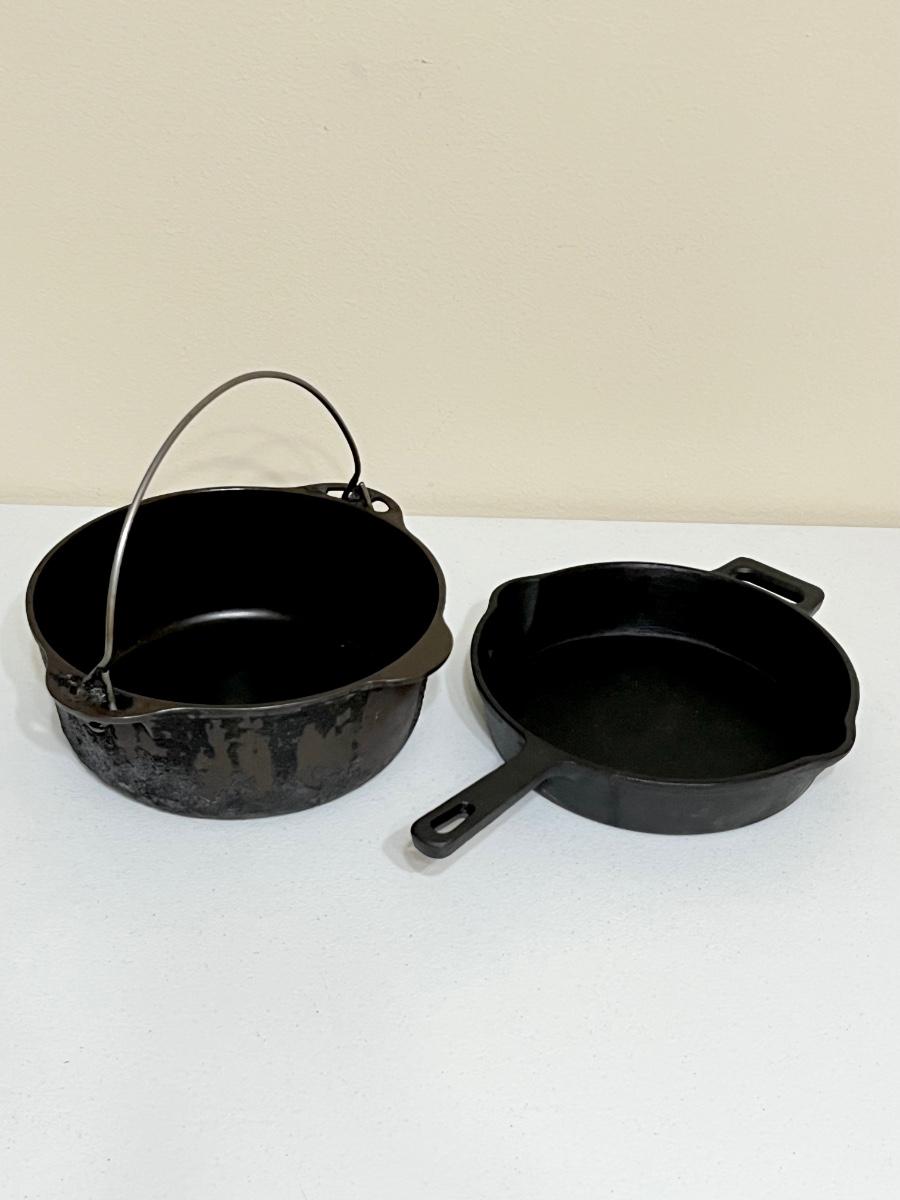 Includes = (1) 8” Skillet ~ (1) 8qt. Dutch Oven will need additional cleaning