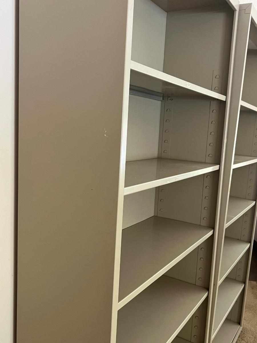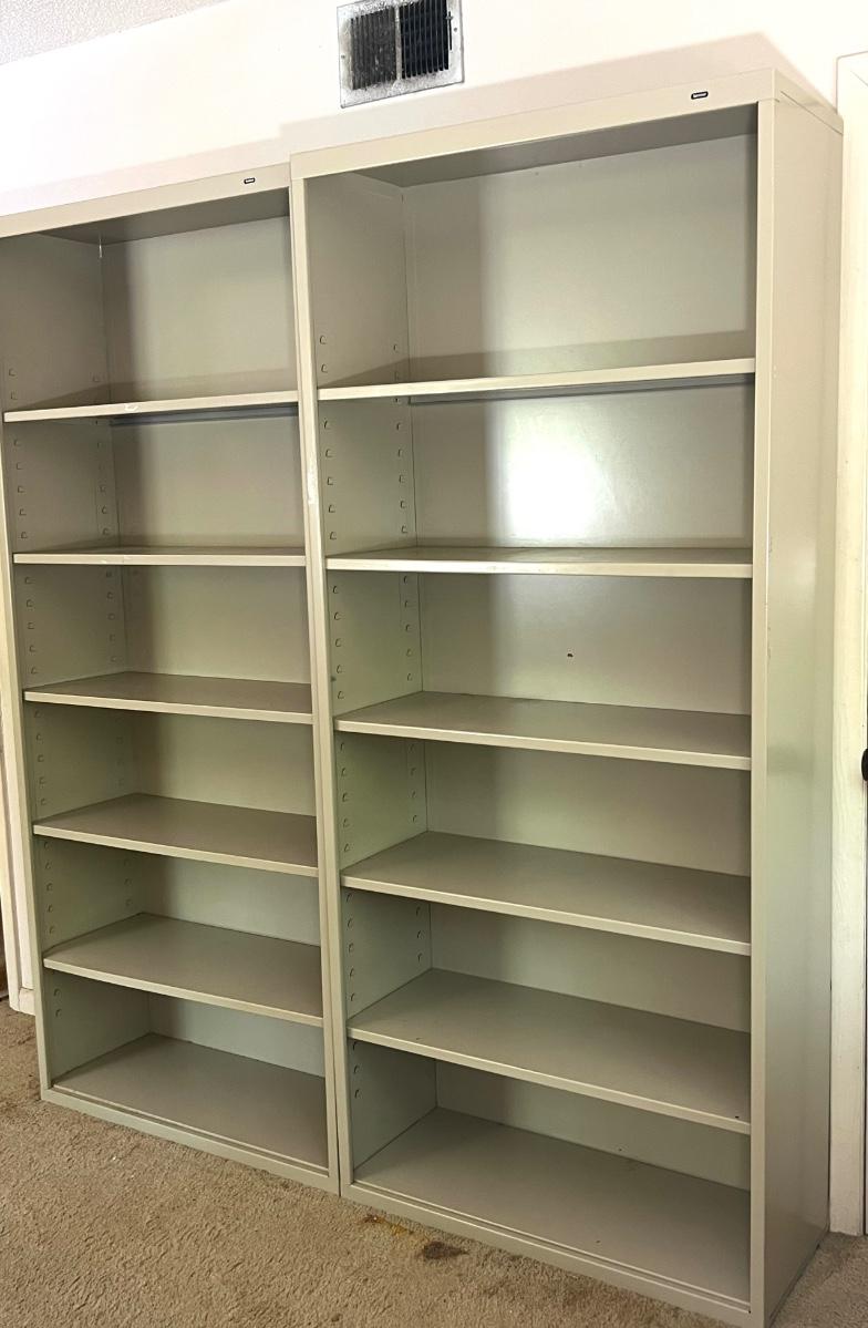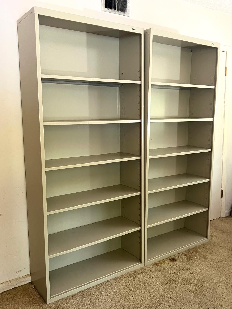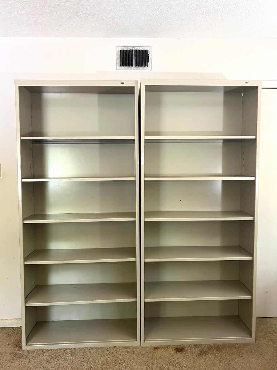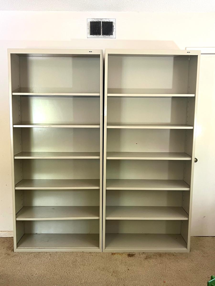 Pair (2) of TENNSCO Adjustable Metal Shelving. Measures 78 inches tall, 13 inches deep and 35 inches wide. Group 1 Shelves