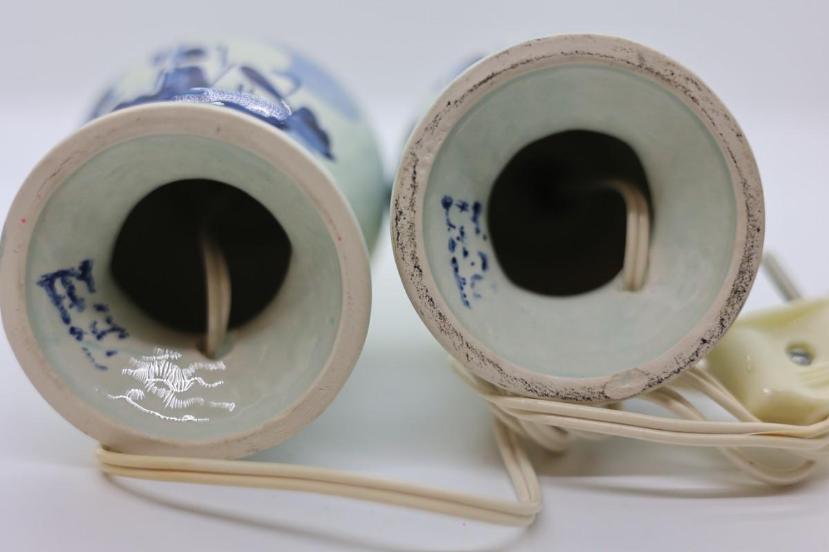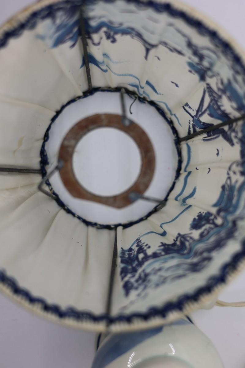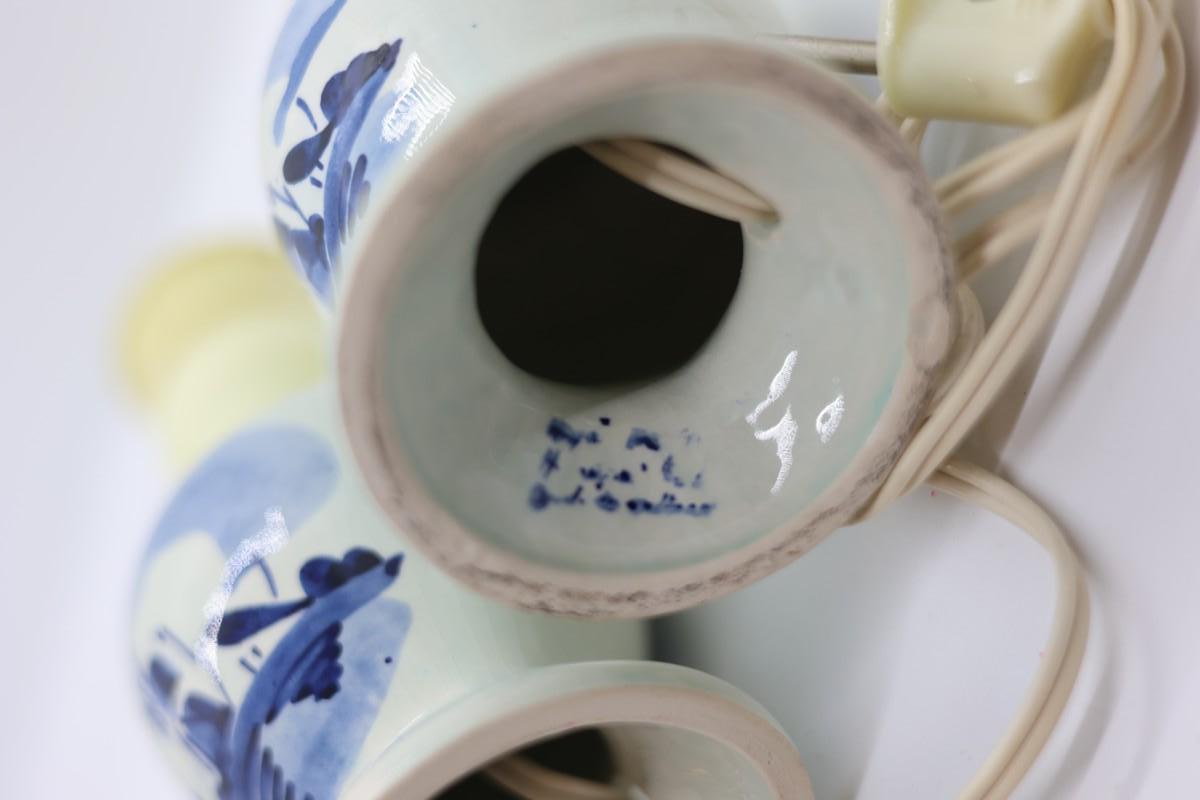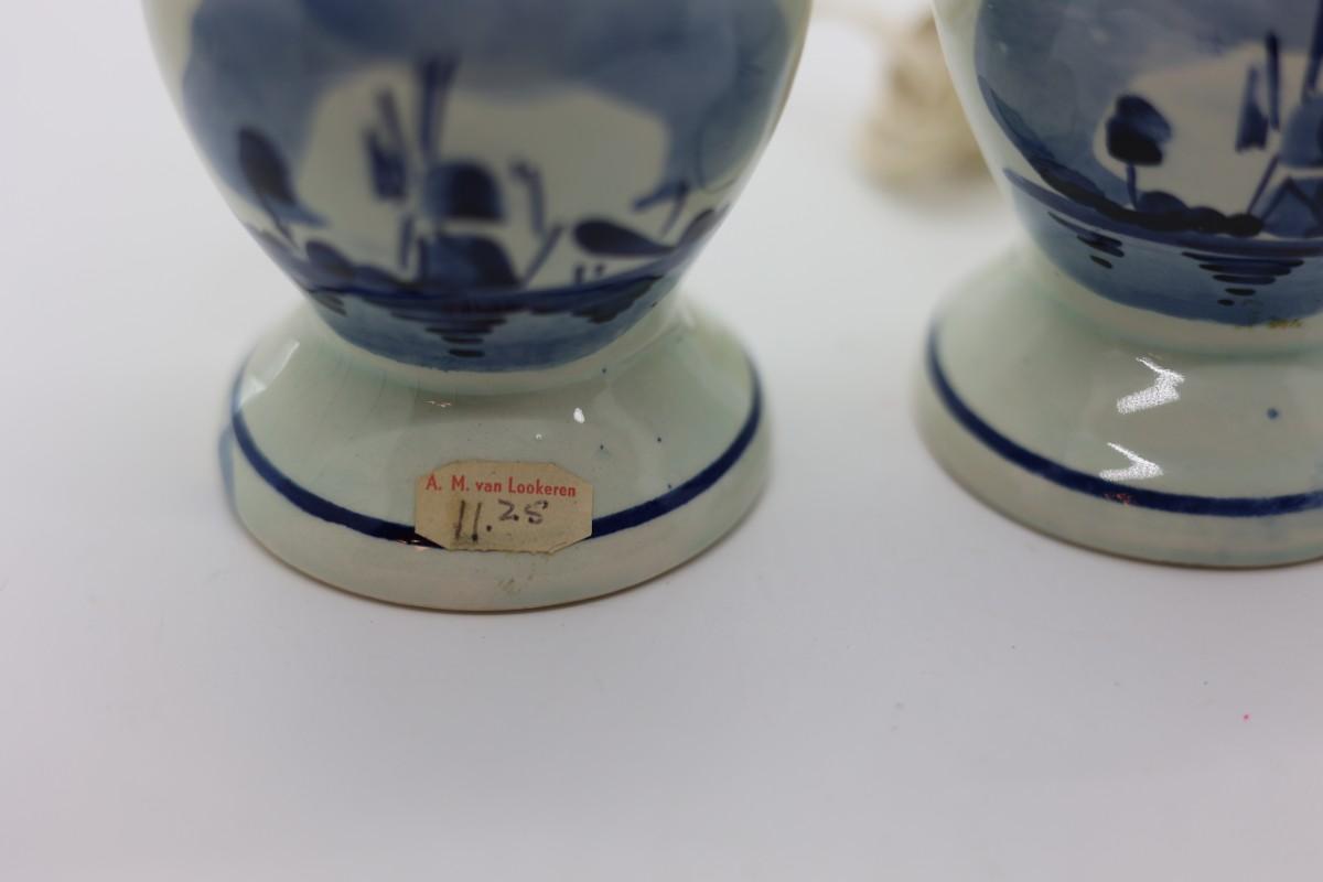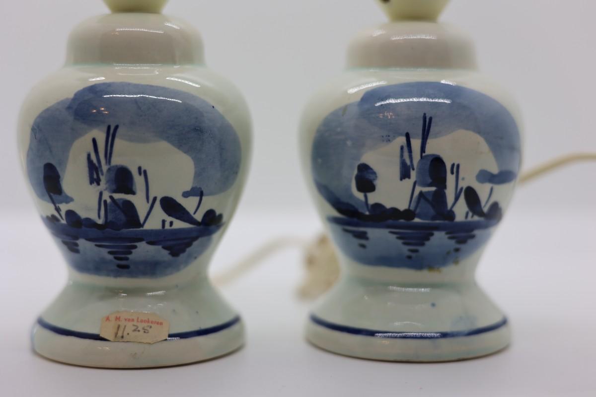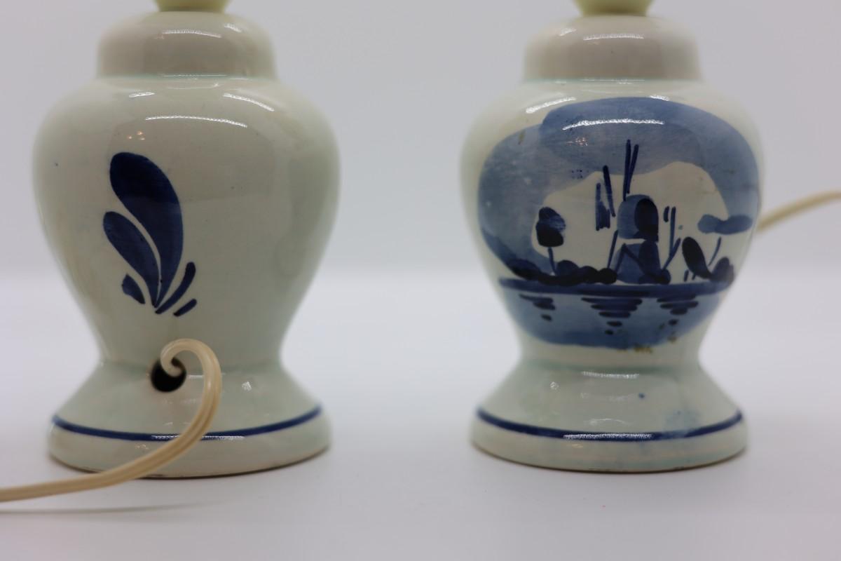 Two (2) Vintage Delft Holland Dutch Lamps W/ Cloth Lampshades