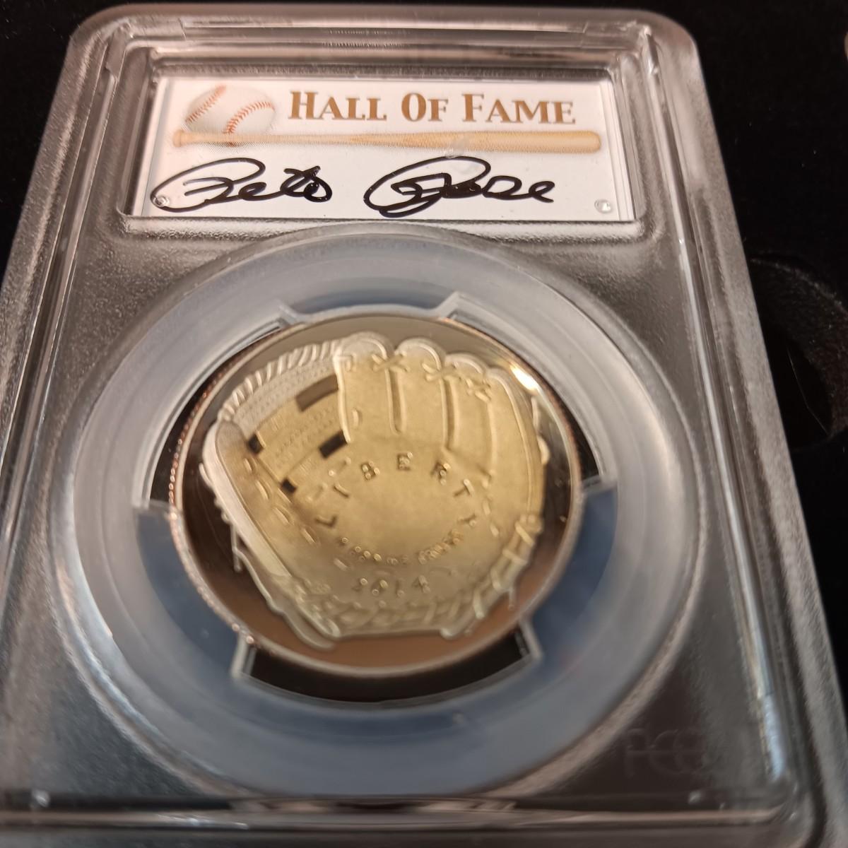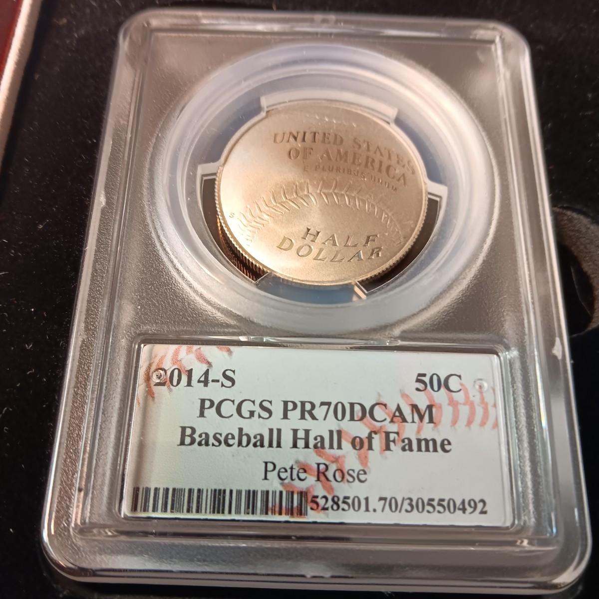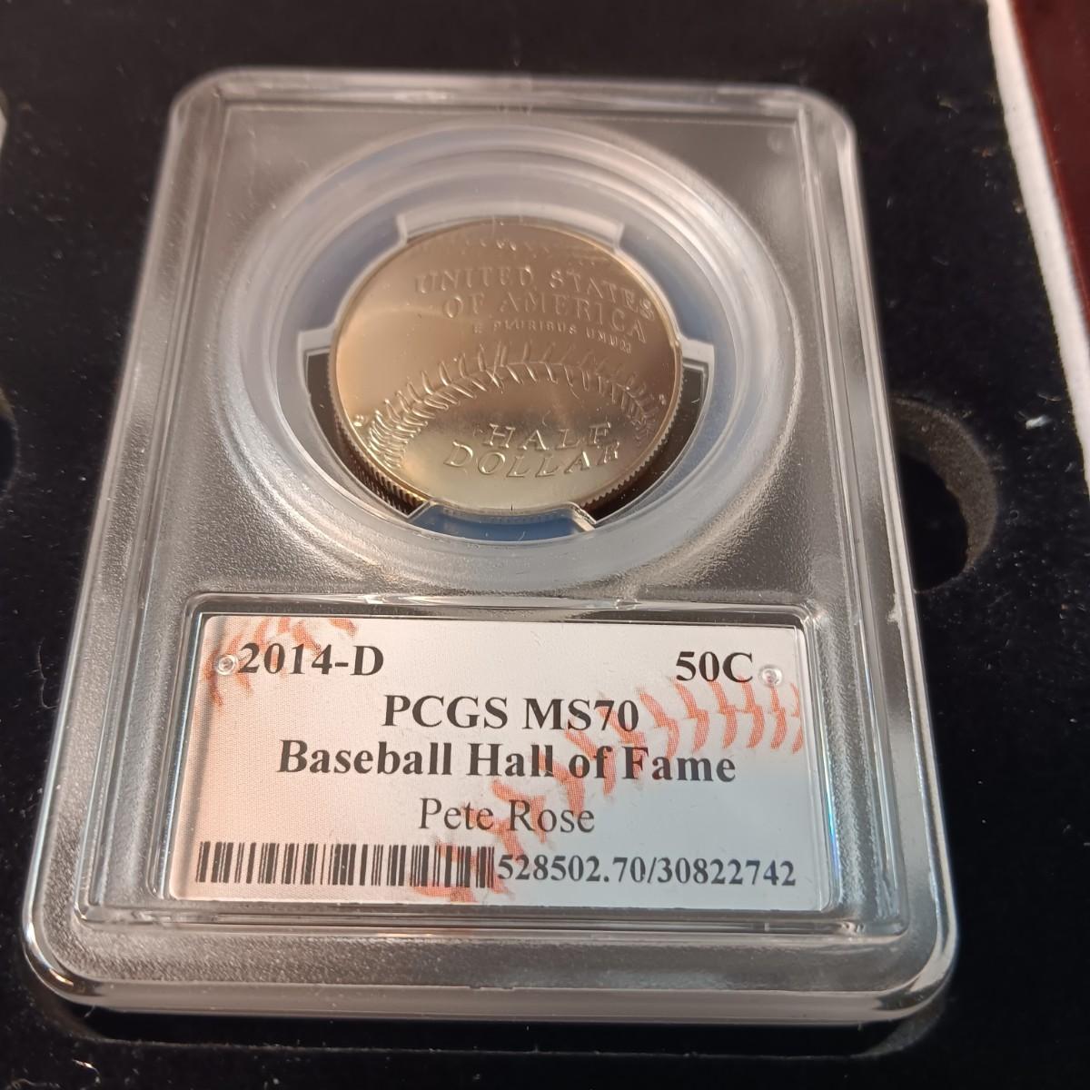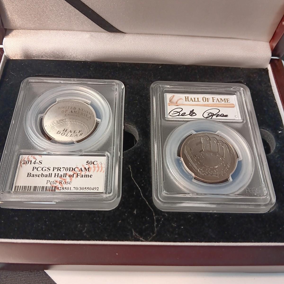 TWO 2014 BASEBALL HALL OF FAME PETE ROSE HALF DOLLARS IN A WOODEN BOX