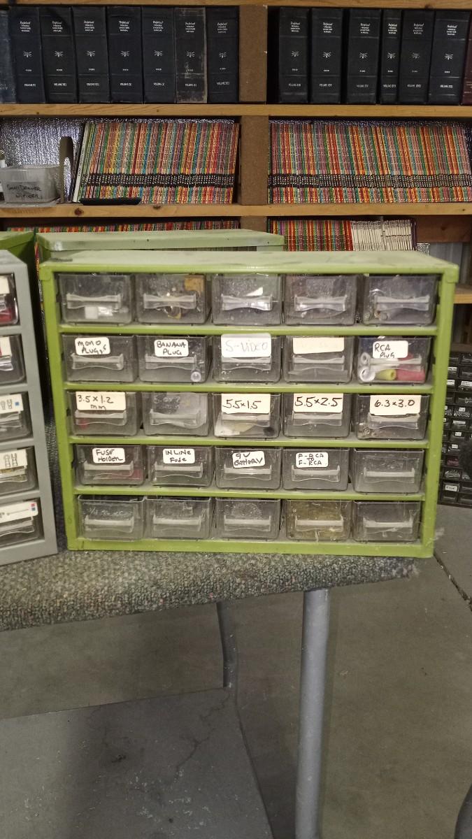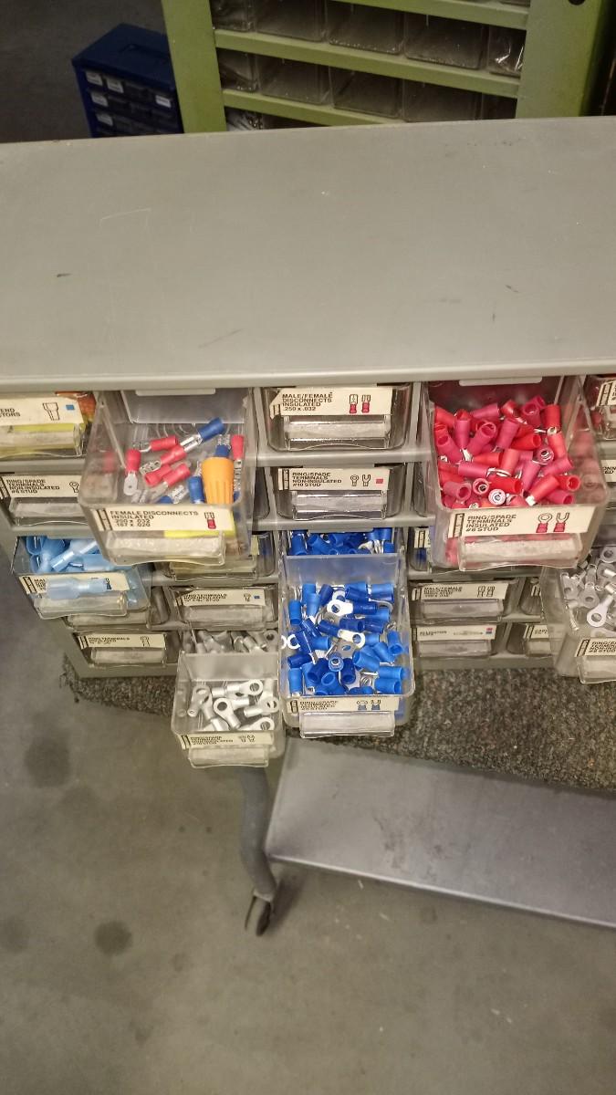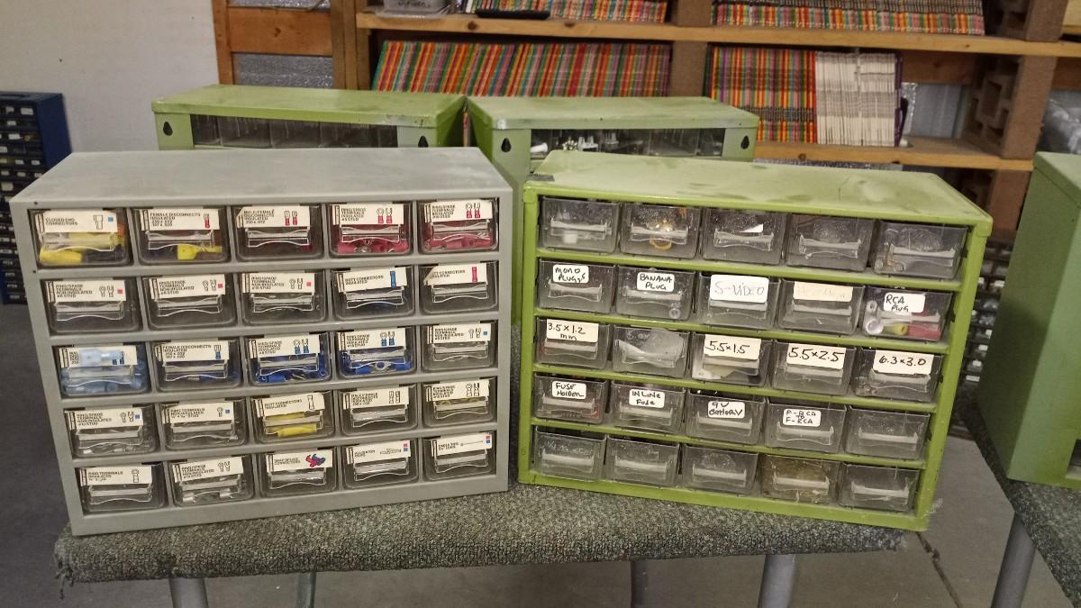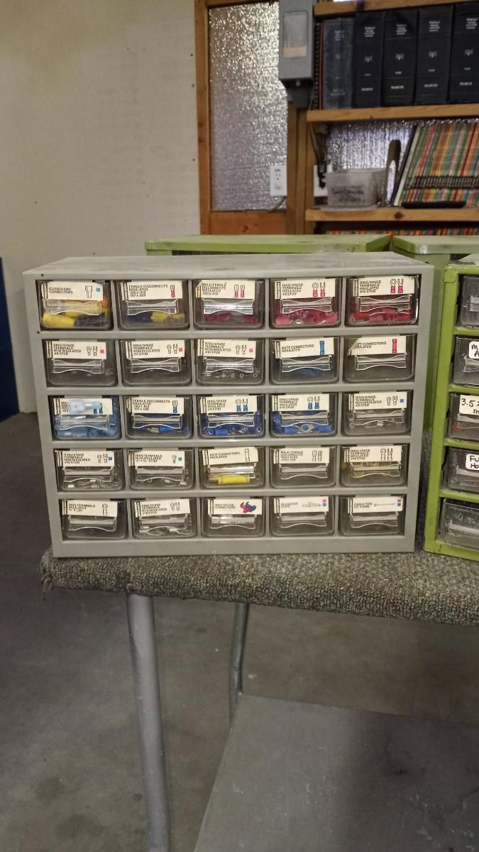TWO 25 DRAWER ORGANIZERS AND SOME ELECTRICAL PARTS