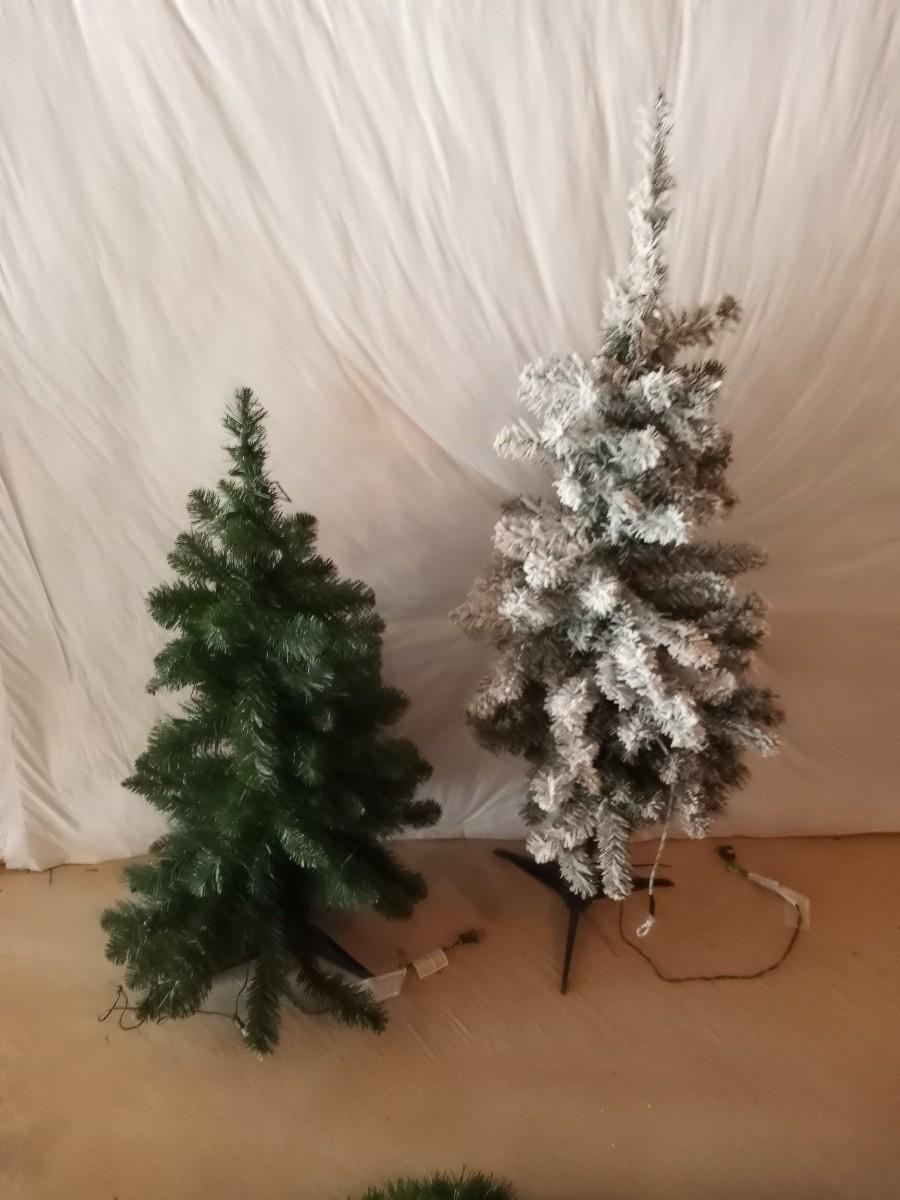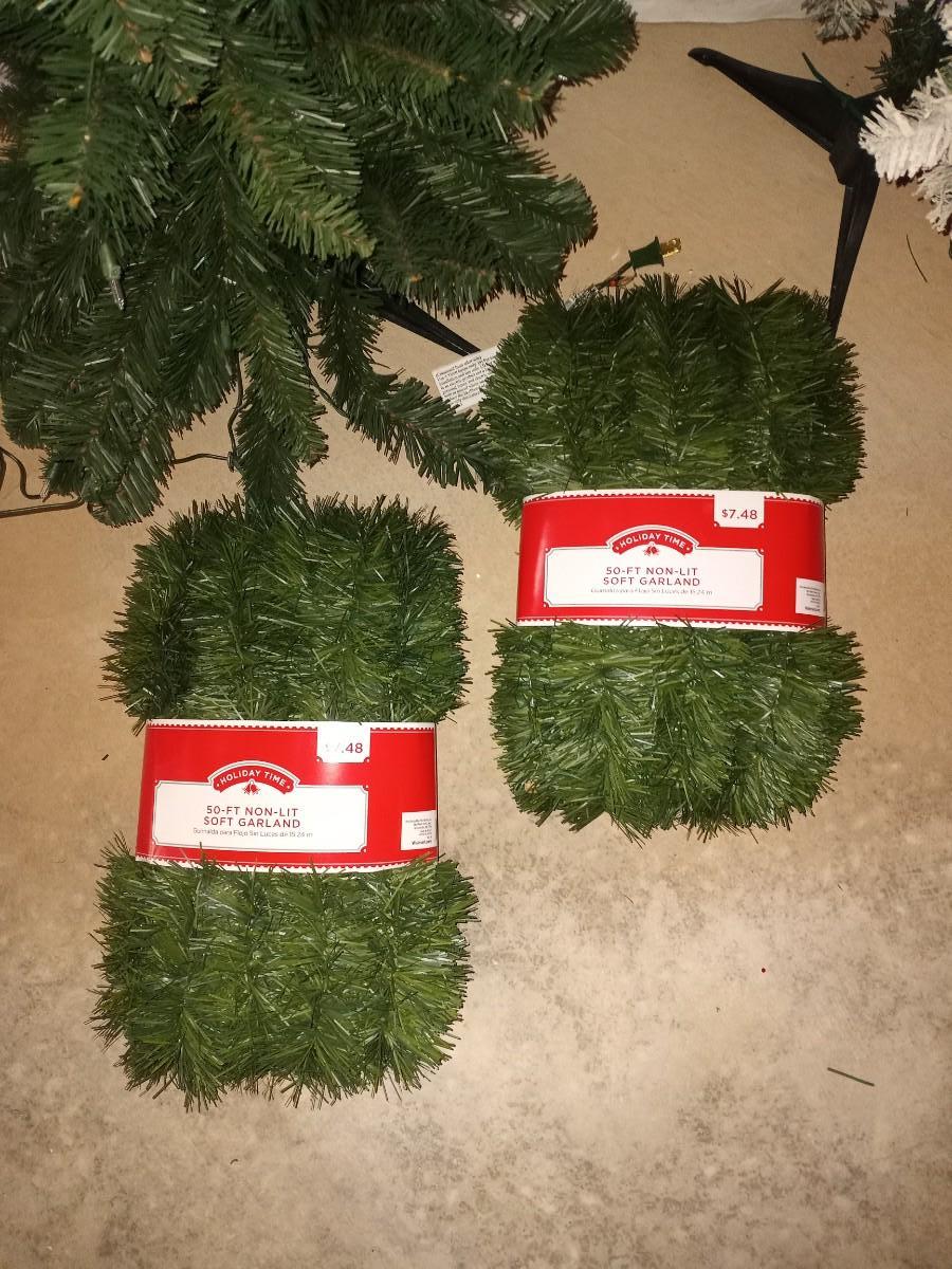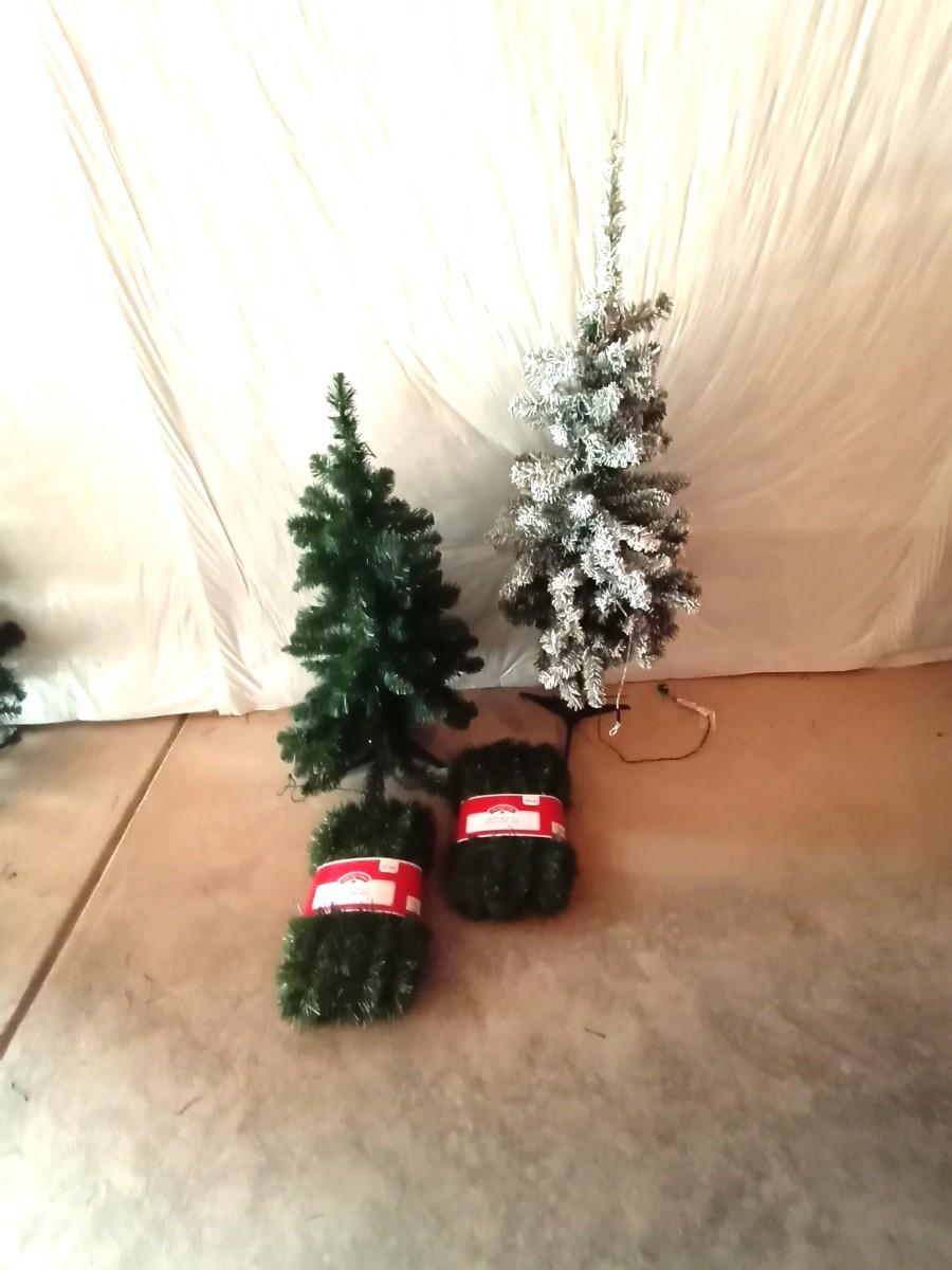 TWO 4' CHRISTMAS TREES AND TWO NEW 50' SOFT GARLAND