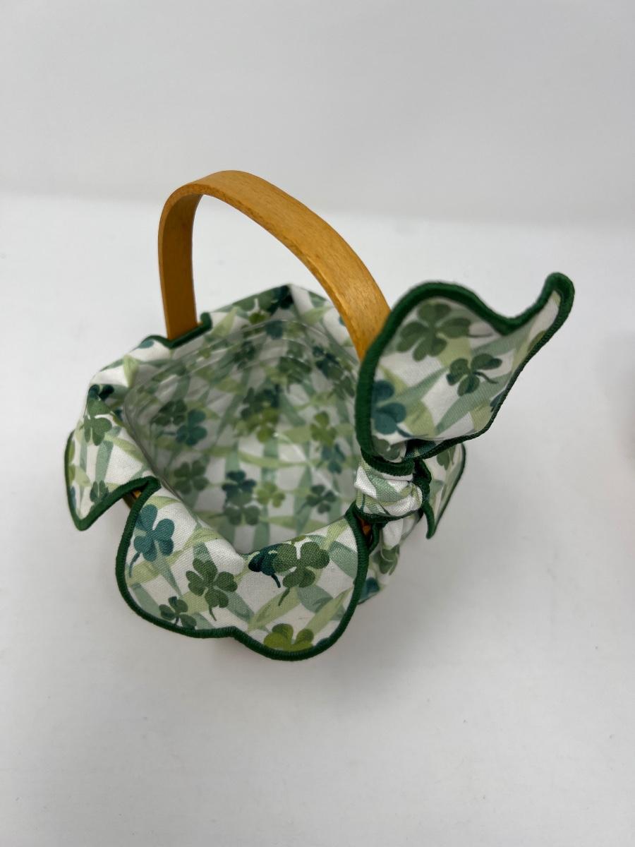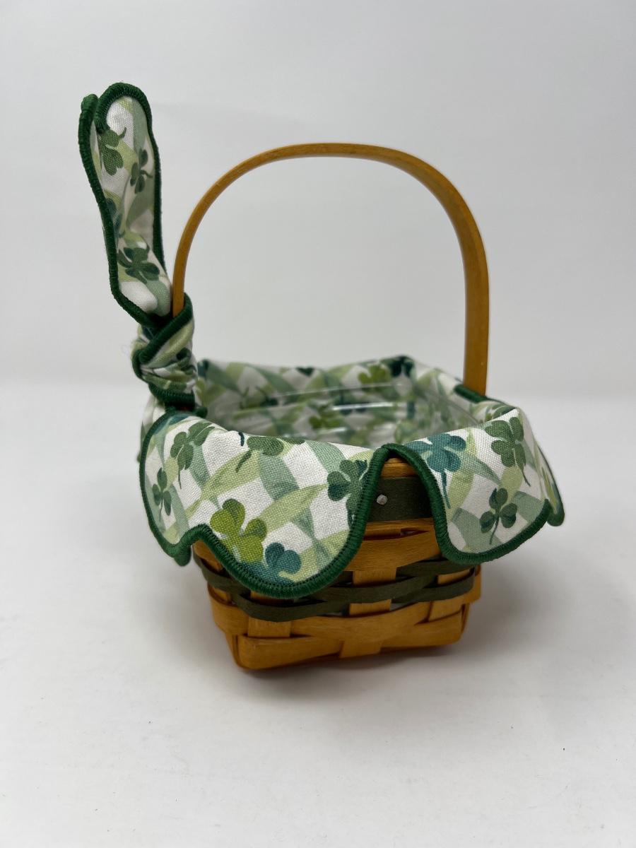St. Patrick’s Day handled basket sized 4” x 4” x 6.5”. Marked Longaberger handwoven Dresden, Ohio.