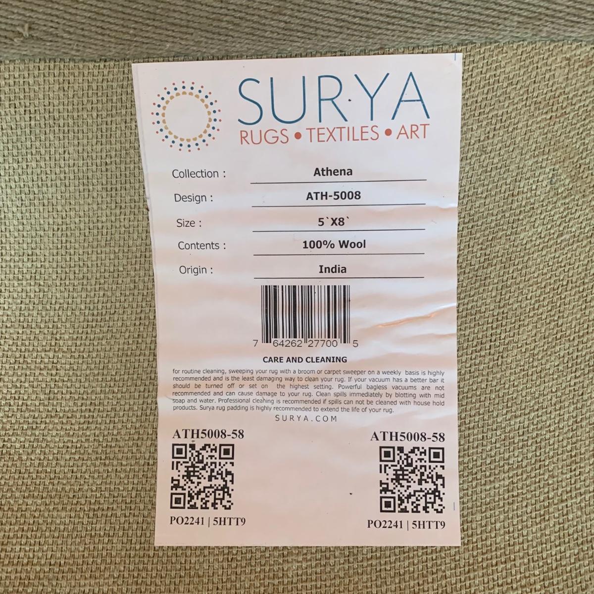 Two Surya Athena 5’ x 8’ Wool Area Rugs (UH-KW)